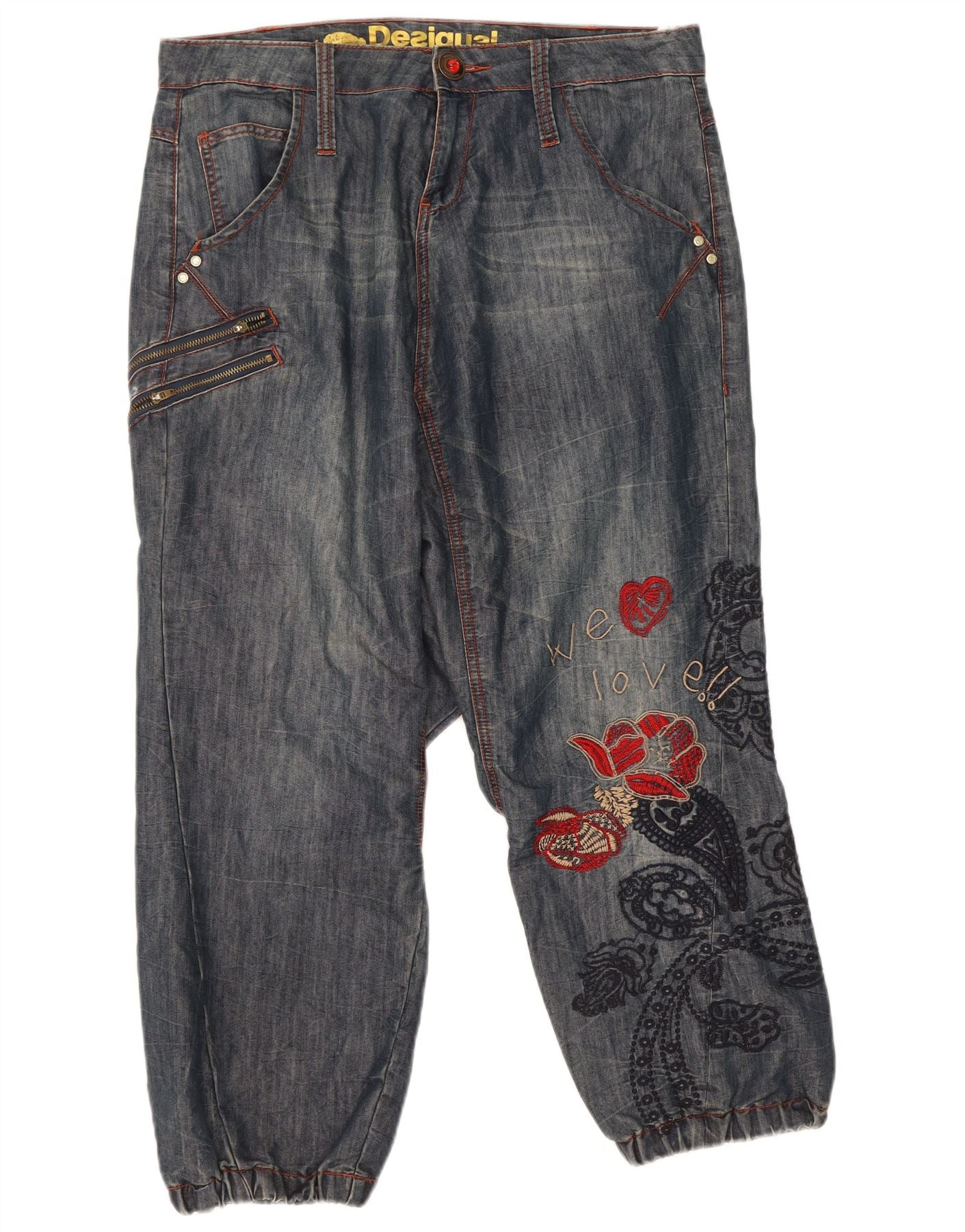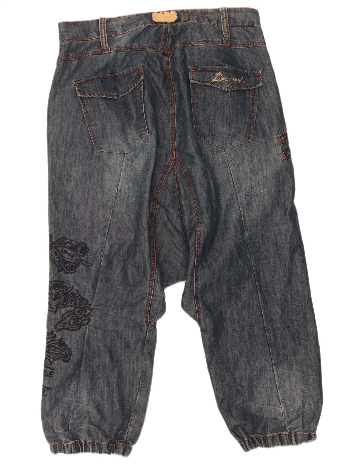 DESIGUAL Womens Joggers Drop Crotch Jeans W34 L15 Blue Floral Polyester