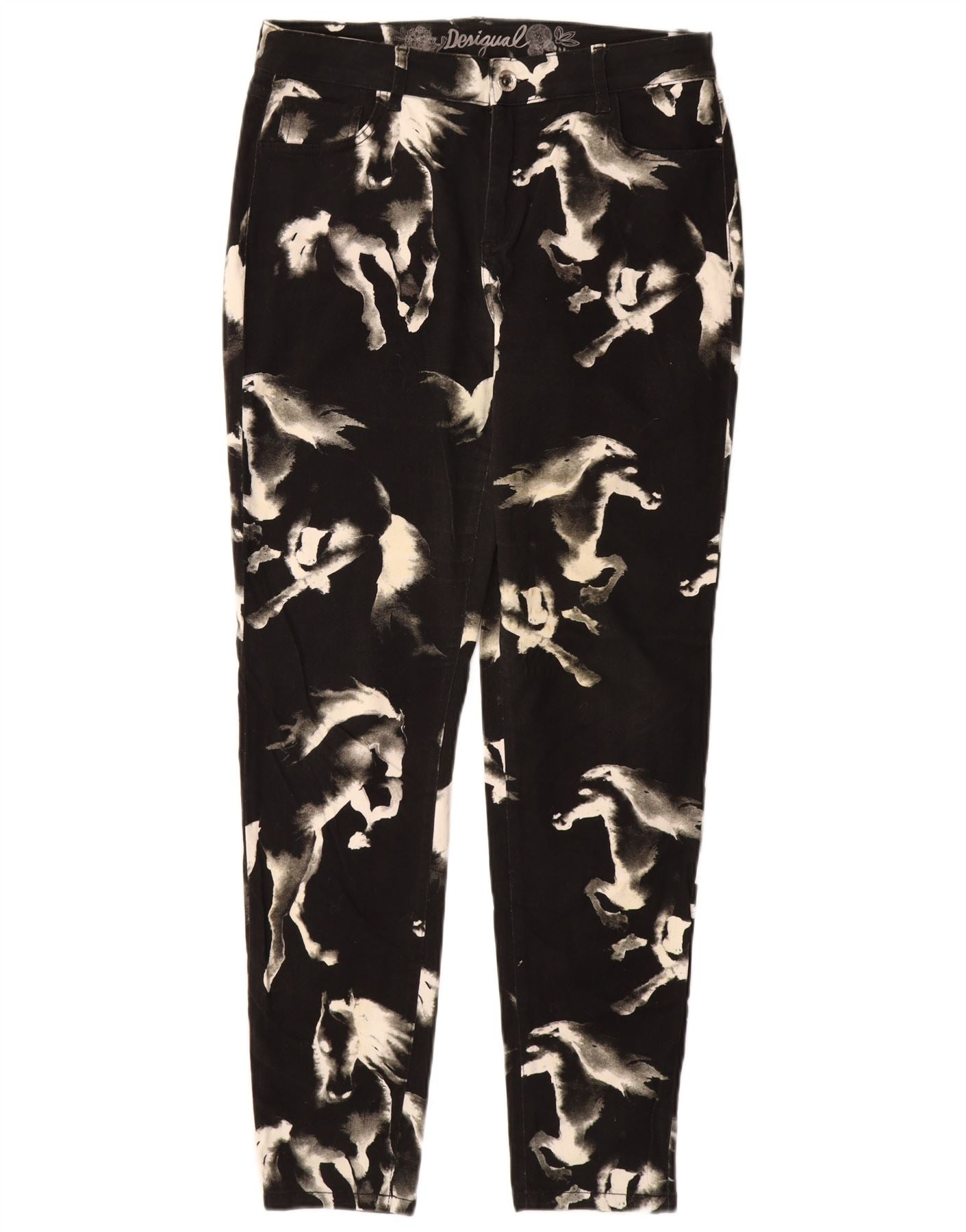 DESIGUAL Pantalones informales ajustados para mujer EU 44 XL W34 L31 Estampado animal negro