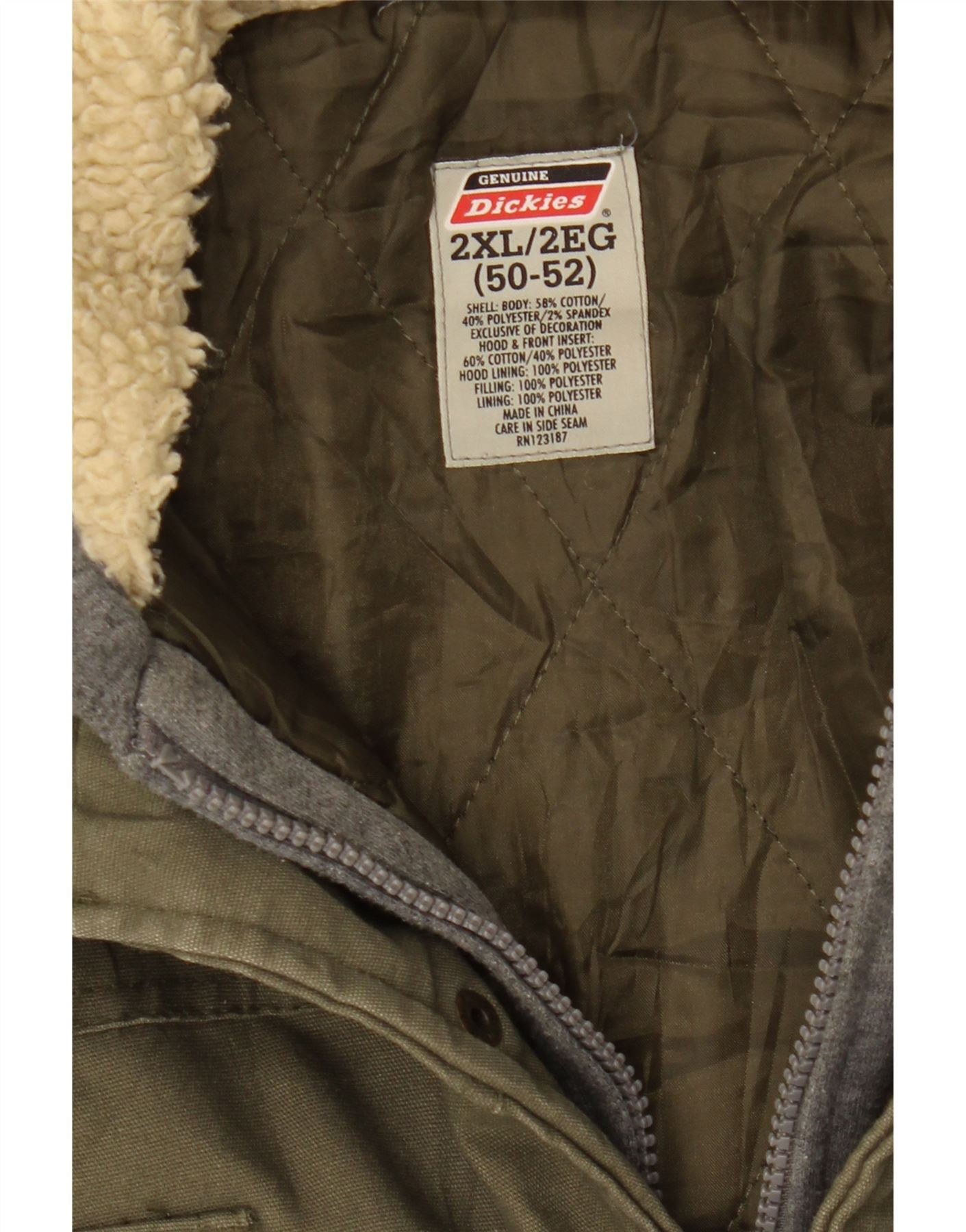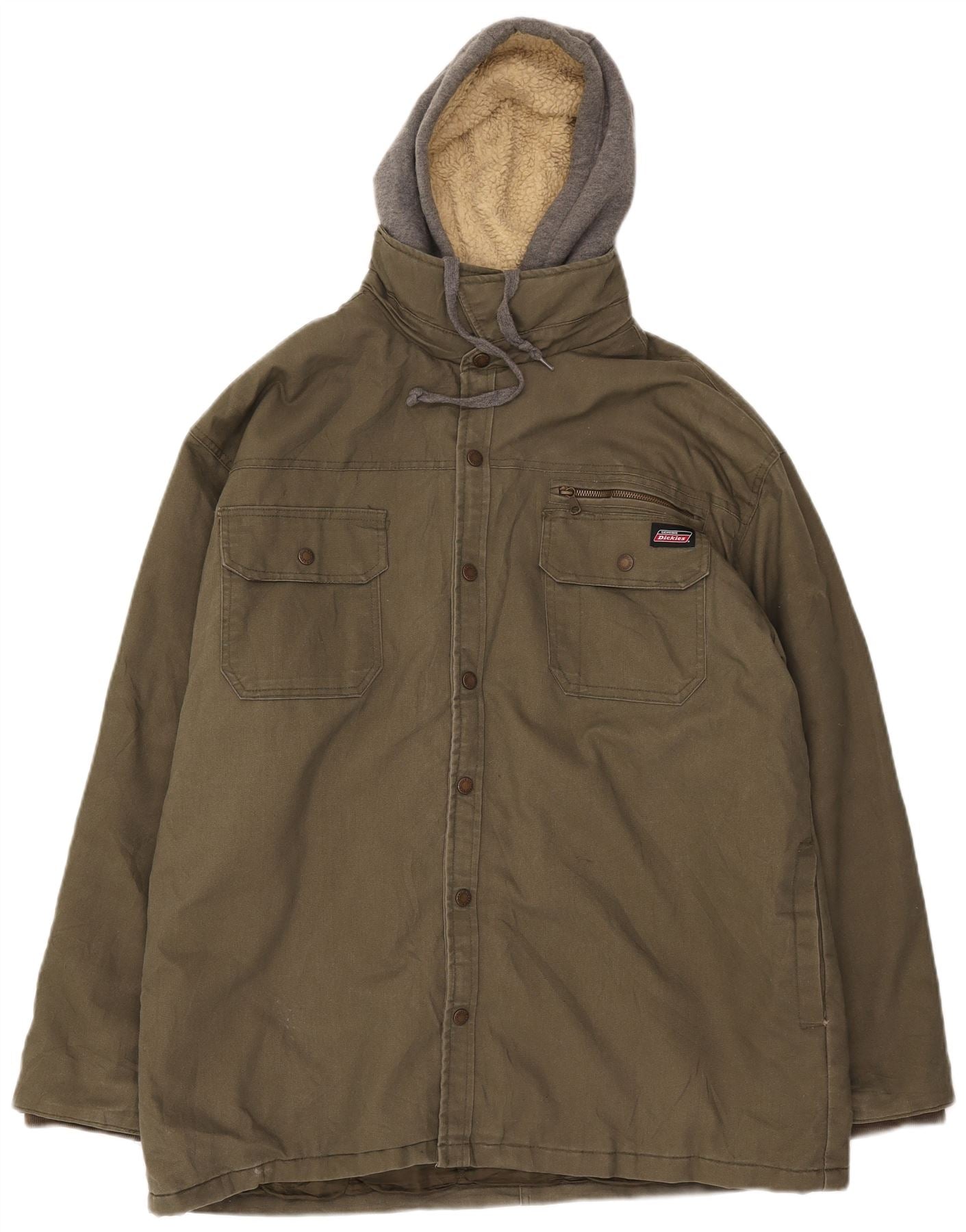 DICKIES Mens Hooded Windbreaker Jacket Size 50/52 2XL Khaki Colourblock