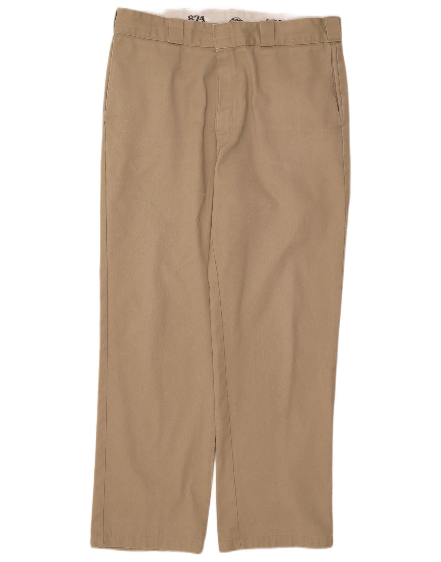 DICKIES Mens Original Fit Straight Chino Trousers W36 L32 Khaki Polyester