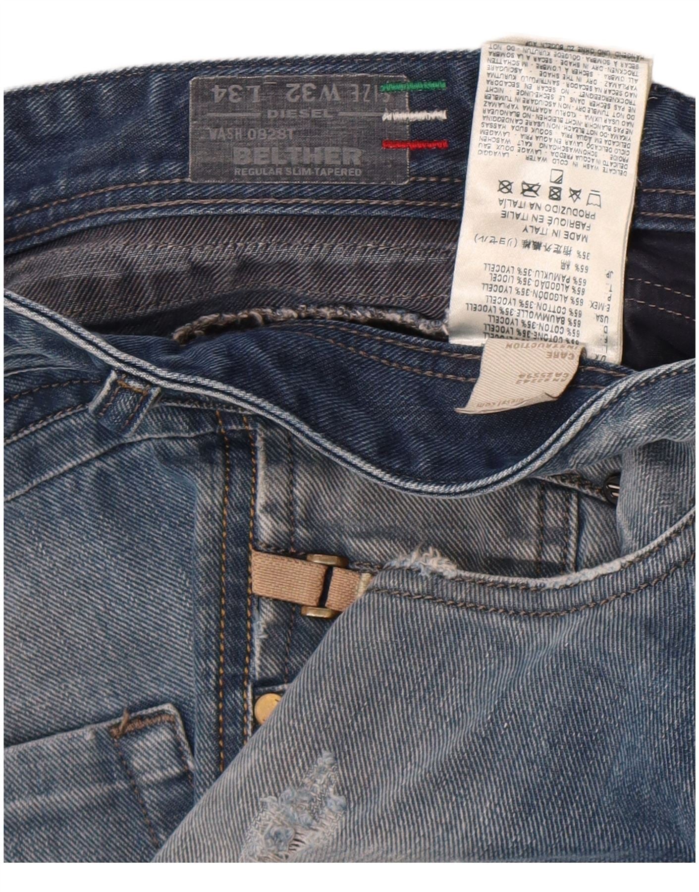 Diesel Hombre Belther Vaqueros Rectos Desgastados W32 L34 Algodón Azul