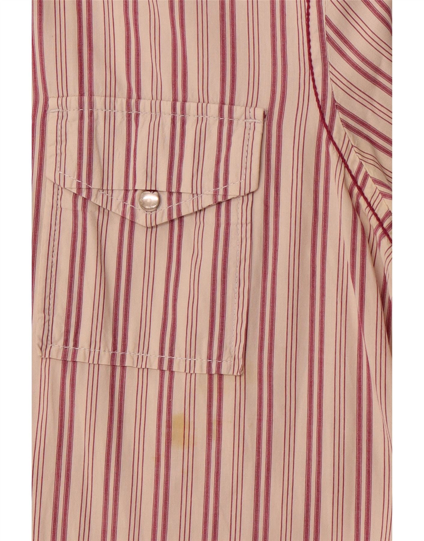 Diesel Hombre Camisa De Manga Corta De Algodón A Rayas Roja Mediana