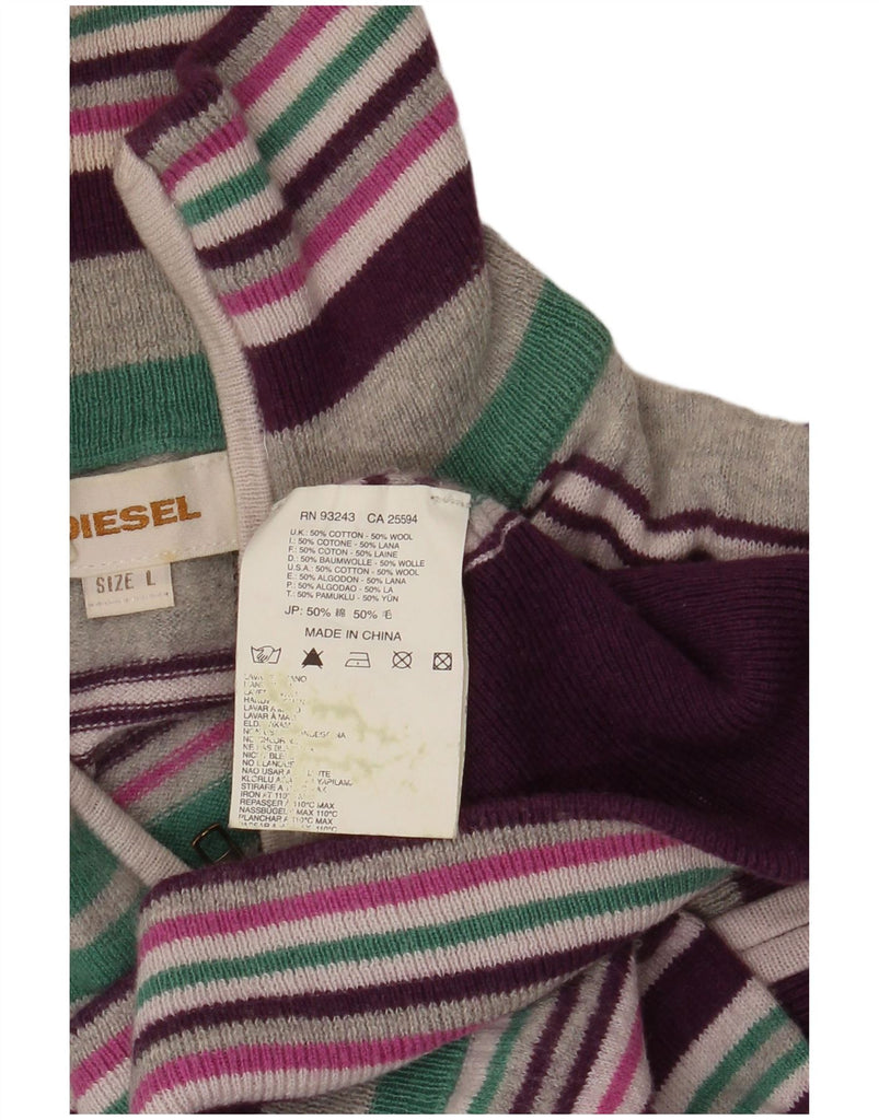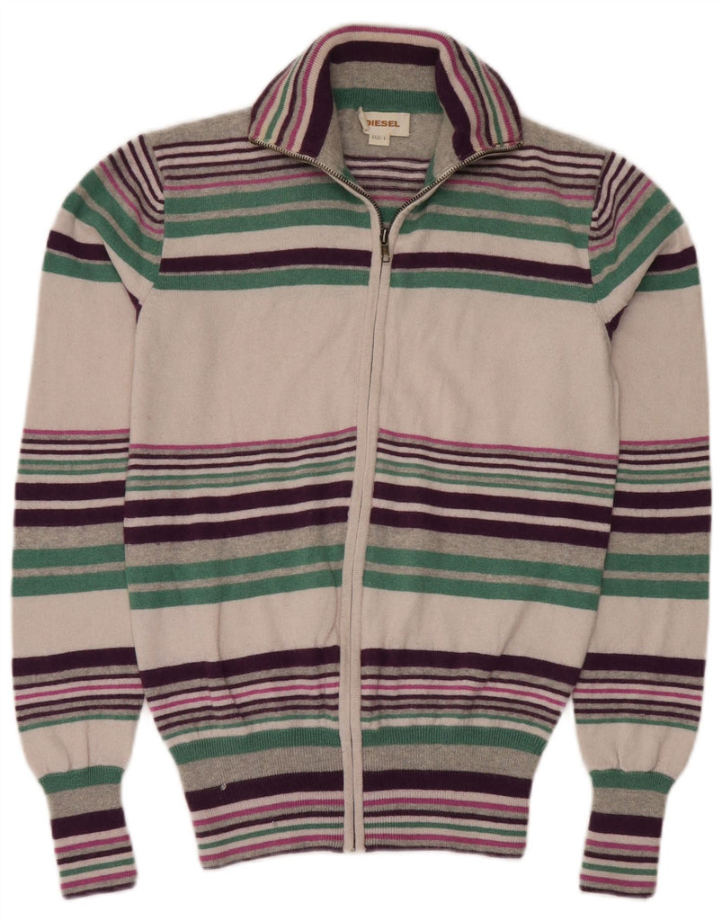 DIESEL Suéter tipo cárdigan para mujer UK 44 Grande Algodón a rayas multicolor