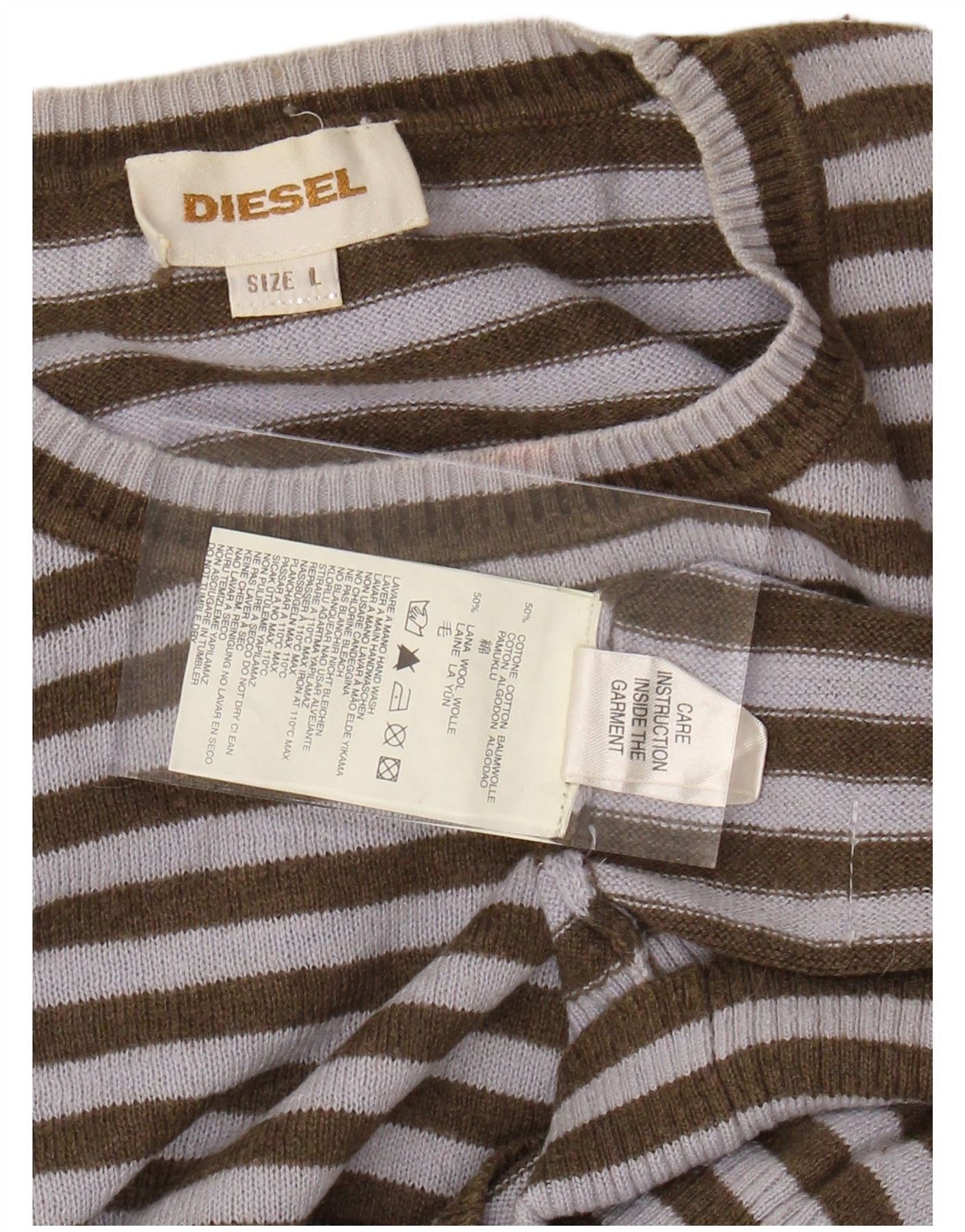 Home > De las mujeres > Ropa Depop > DIESEL Suéter tipo jersey con cuello redondo para mujer UK 46 Large Caqui Algodón a rayas