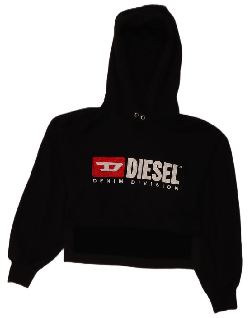 DIESEL Jersey con capucha y gráfico corto para mujer UK 10 Small Black Cotton