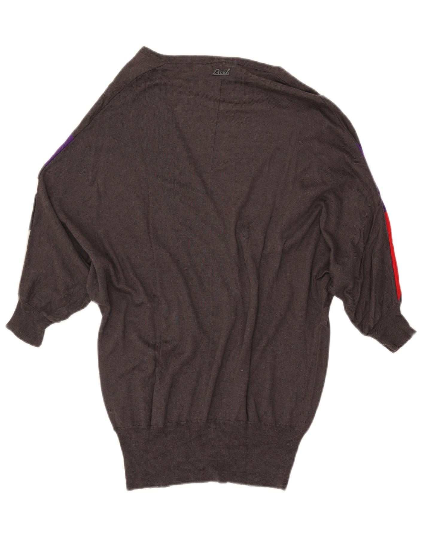 DIESEL Suéter tipo cárdigan largo para mujer UK 40 Pequeño gris Colorblock