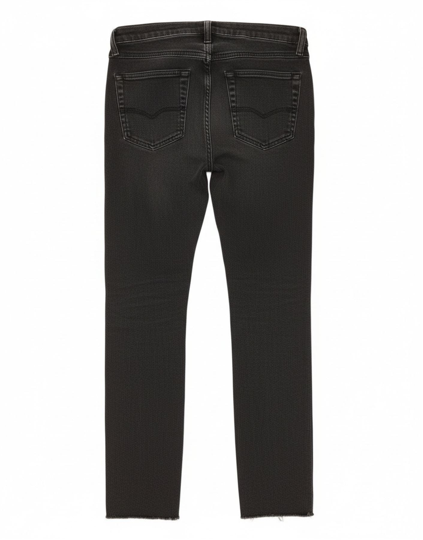 - Descripción de IA: Estos vaqueros pitillo para mujer de Diesel están confeccionados en denim negro con un acabado desgastado. Tienen cintura de talle medio y cierre de botón. El diseño de corte entallado se estrecha hasta alcanzar un largo recortado. Los dobladillos están crudos y deshilachados. Se incluyen bolsillos clásicos. Un logotipo sutil de la marca añade un toque distintivo.
