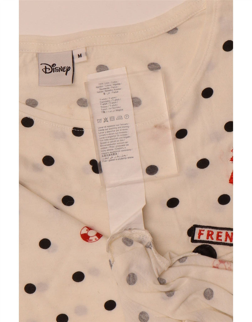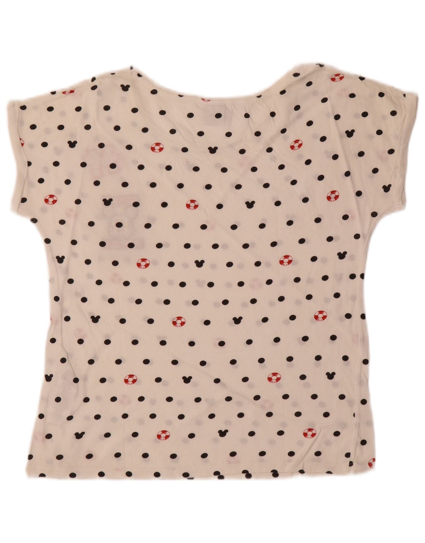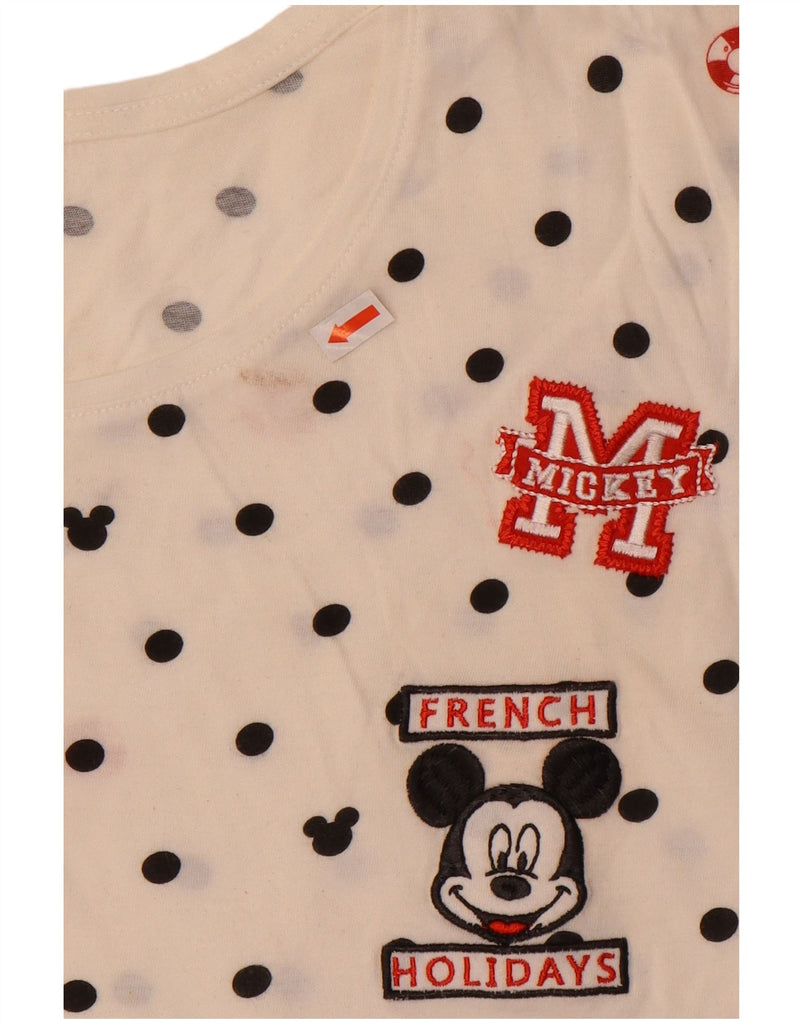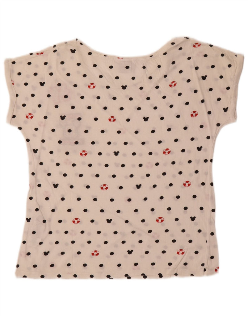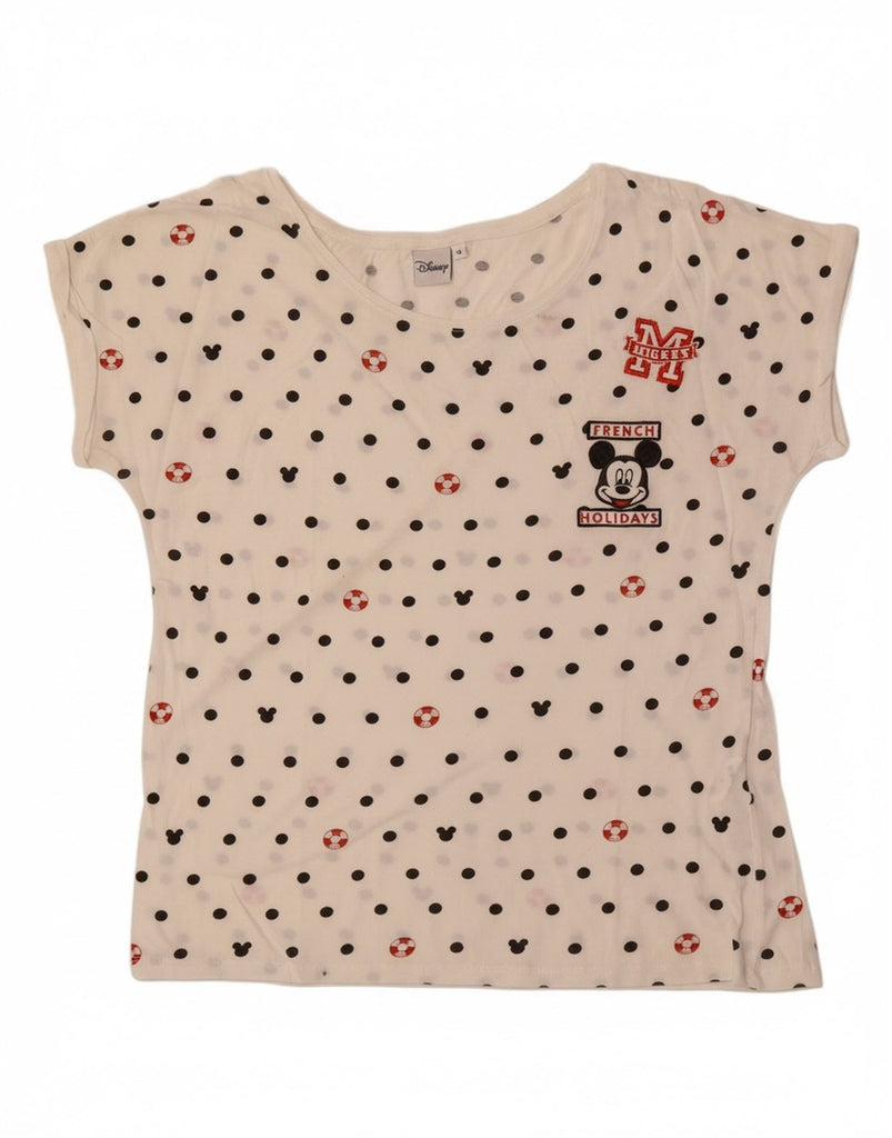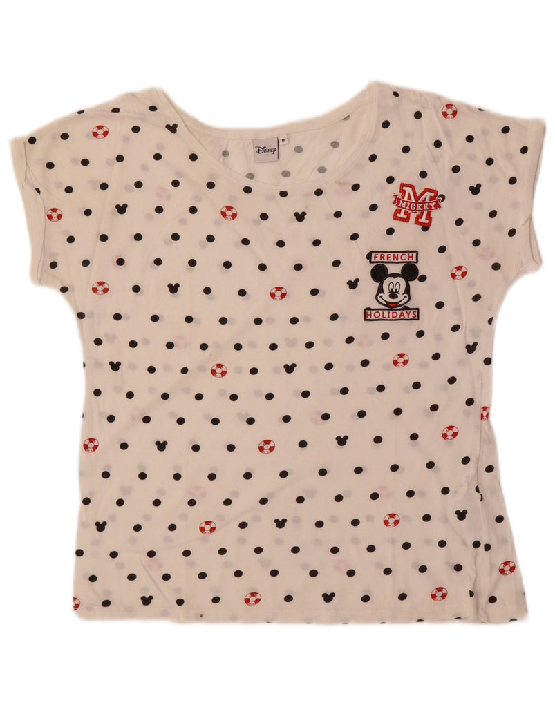 DISNEY Womens Mickey Mouse T-Shirt Top UK 12 Medium White Polka Dot Cotton