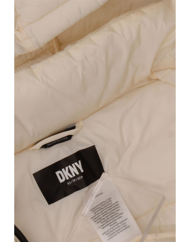 DKNY Chaqueta acolchada con capucha y ajuste holgado para mujer UK 6 XS Off White Nylon