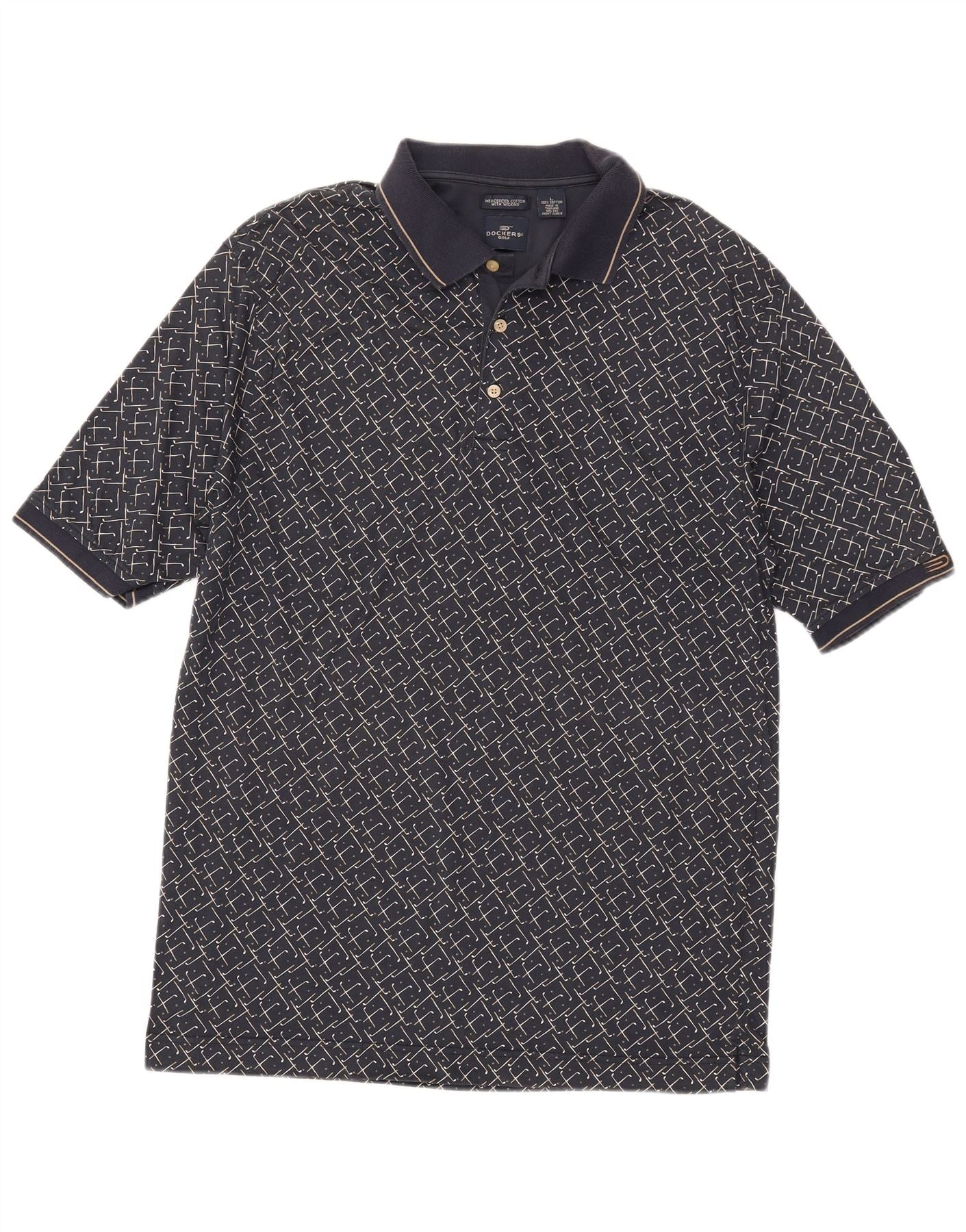 DOCKERS Polo para hombre de algodón geométrico azul marino grande