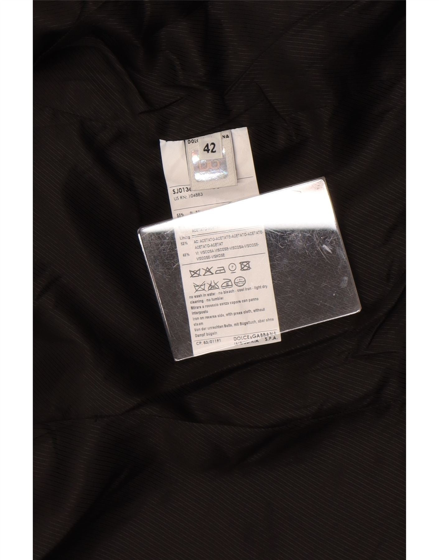 - Composición exacta del material: 52% Acetato, 48% Viscosa. Forro: 100% Acetato