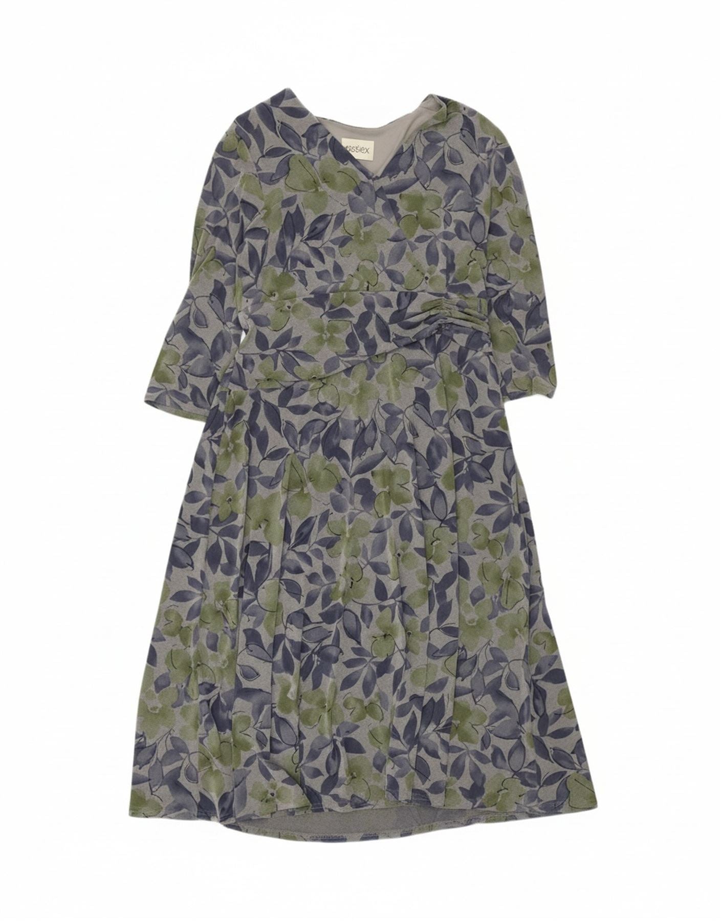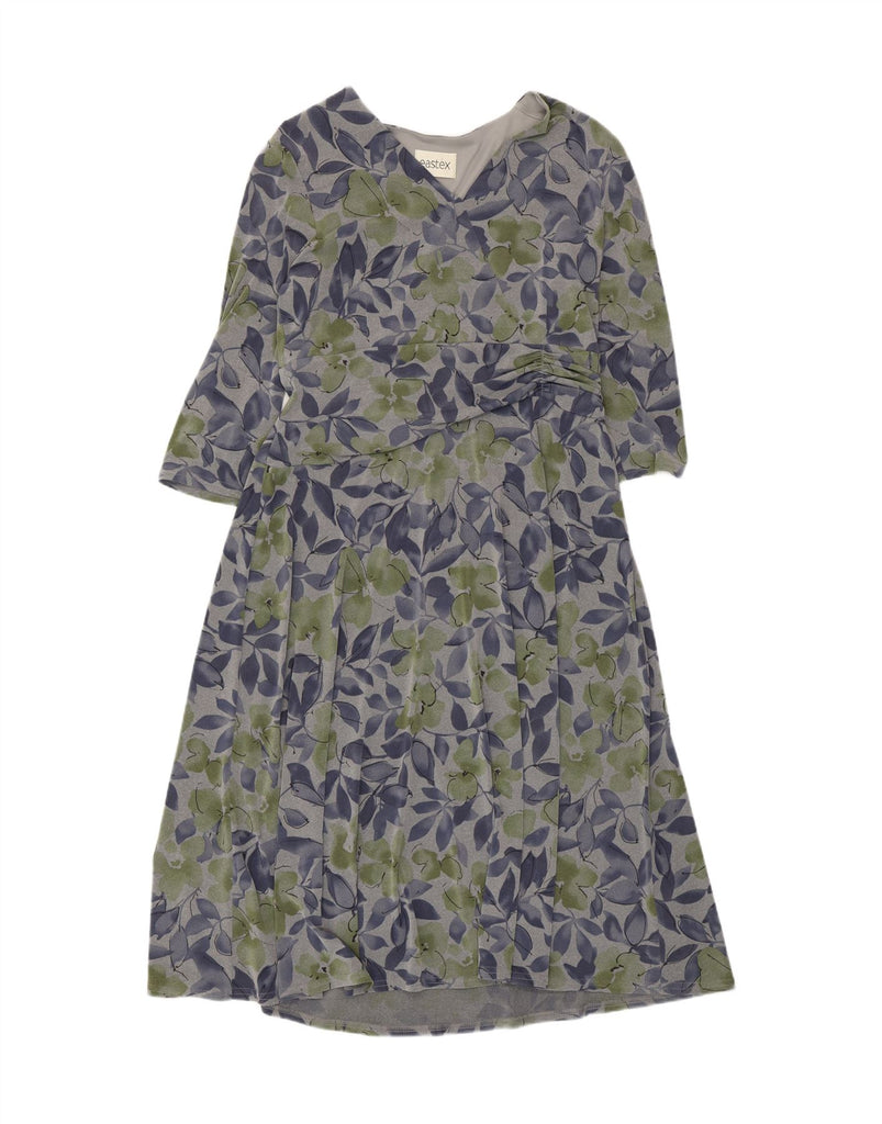 EASTEX Womens 3/4 Sleeve Maxi Dress UK 16 Large Grey Floral Polyester