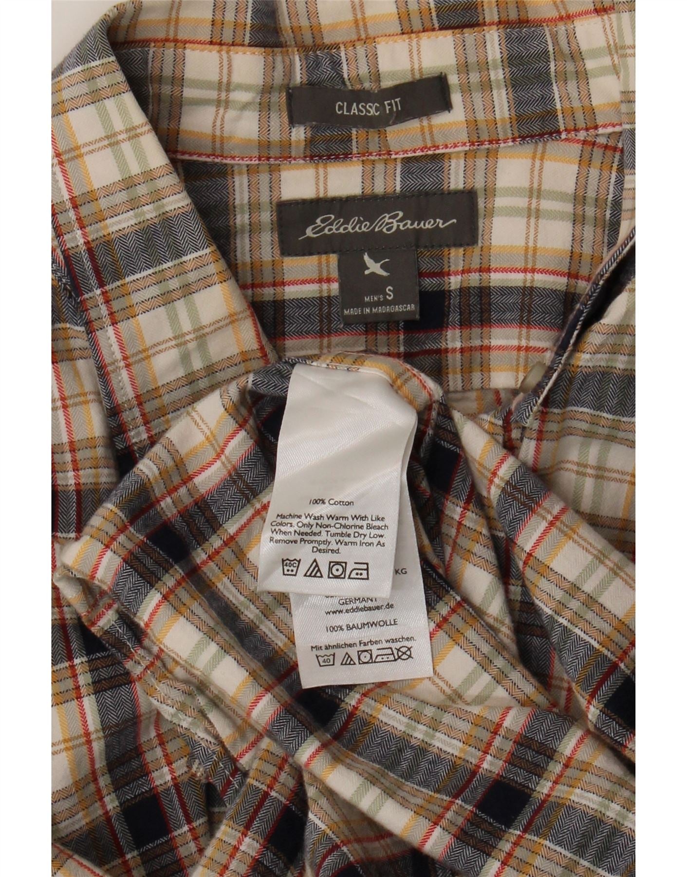 - Descripción de IA: Esta camisa de franela para hombre de Eddie Bauer está confeccionada con franela suave 100 % algodón. Presenta un clásico patrón de cuadros multicolor en beige, negro, verde y rojo. El escote con cuello y la parte delantera abotonada ofrecen un look atemporal. Manga larga rematada con puños abotonados. Un ajuste clásico garantiza un uso cómodo. Esta camisa combina calidez con una estética tradicional, perfecta para el estilo diario.