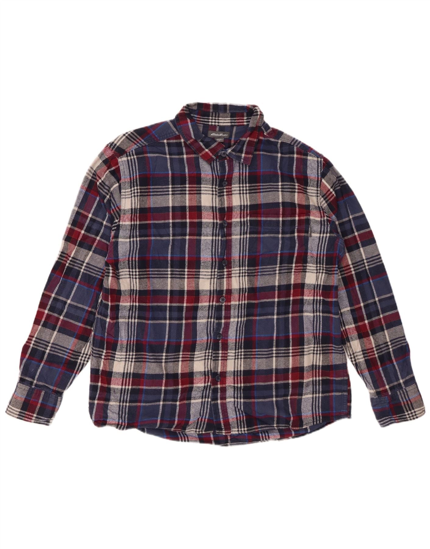 EDDIE BAUER Camisa de franela para hombre Algodón a cuadros azul marino grande