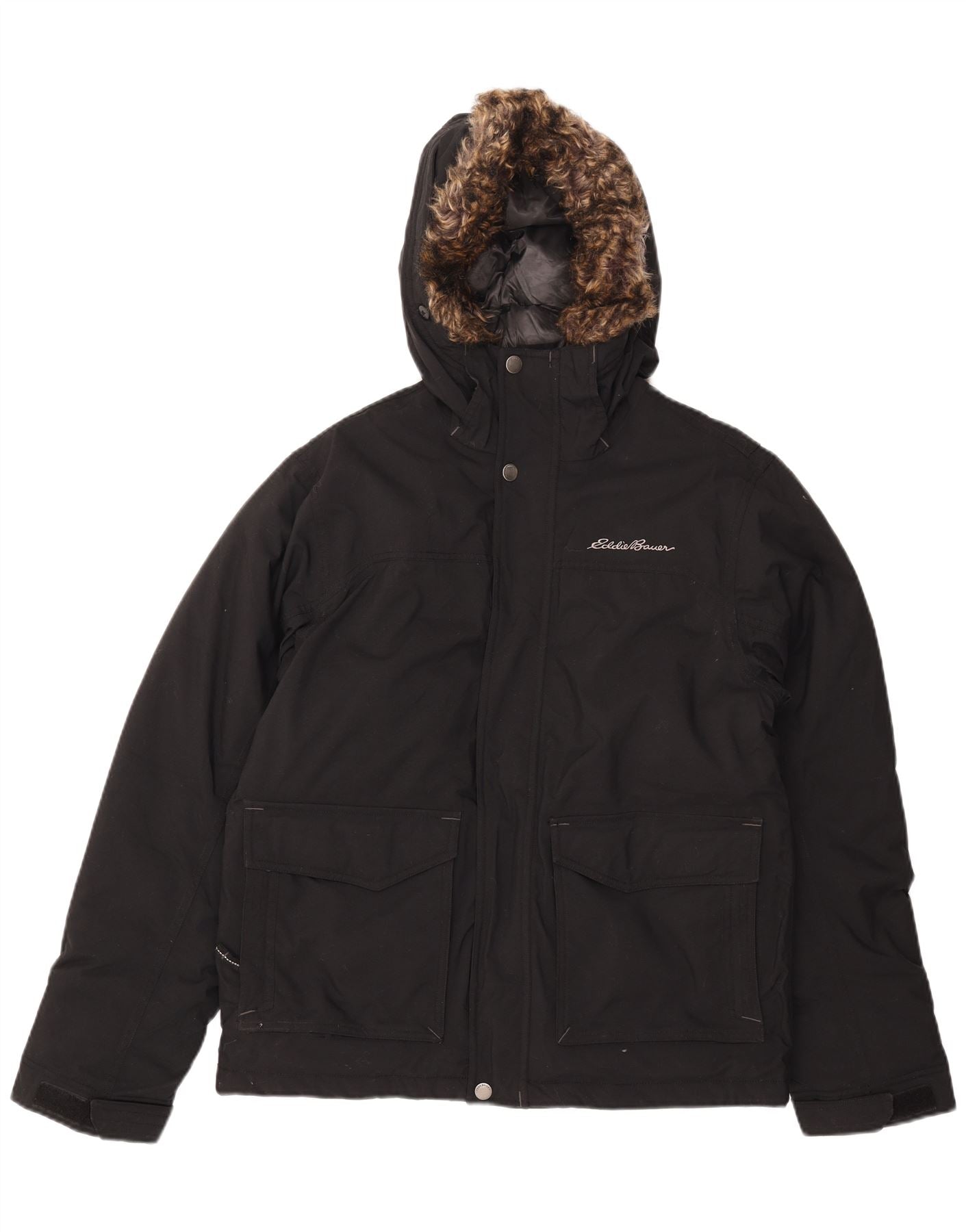 EDDIE BAUER Chaqueta cortavientos con capucha para hombre UK 38 Medium Black Nylon