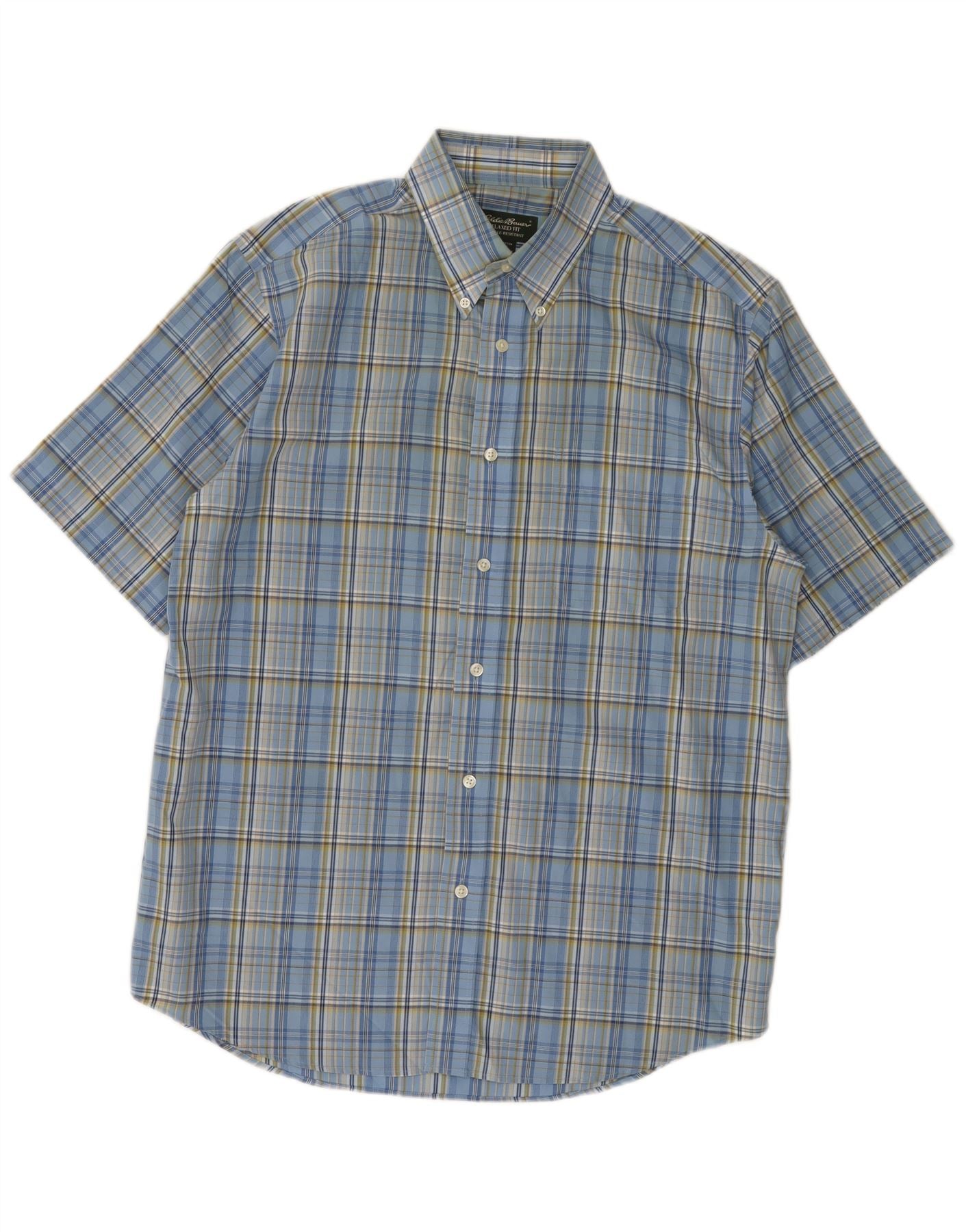 EDDIE BAUER Camisa de manga corta de ajuste relajado para hombre Algodón a cuadros azul medio