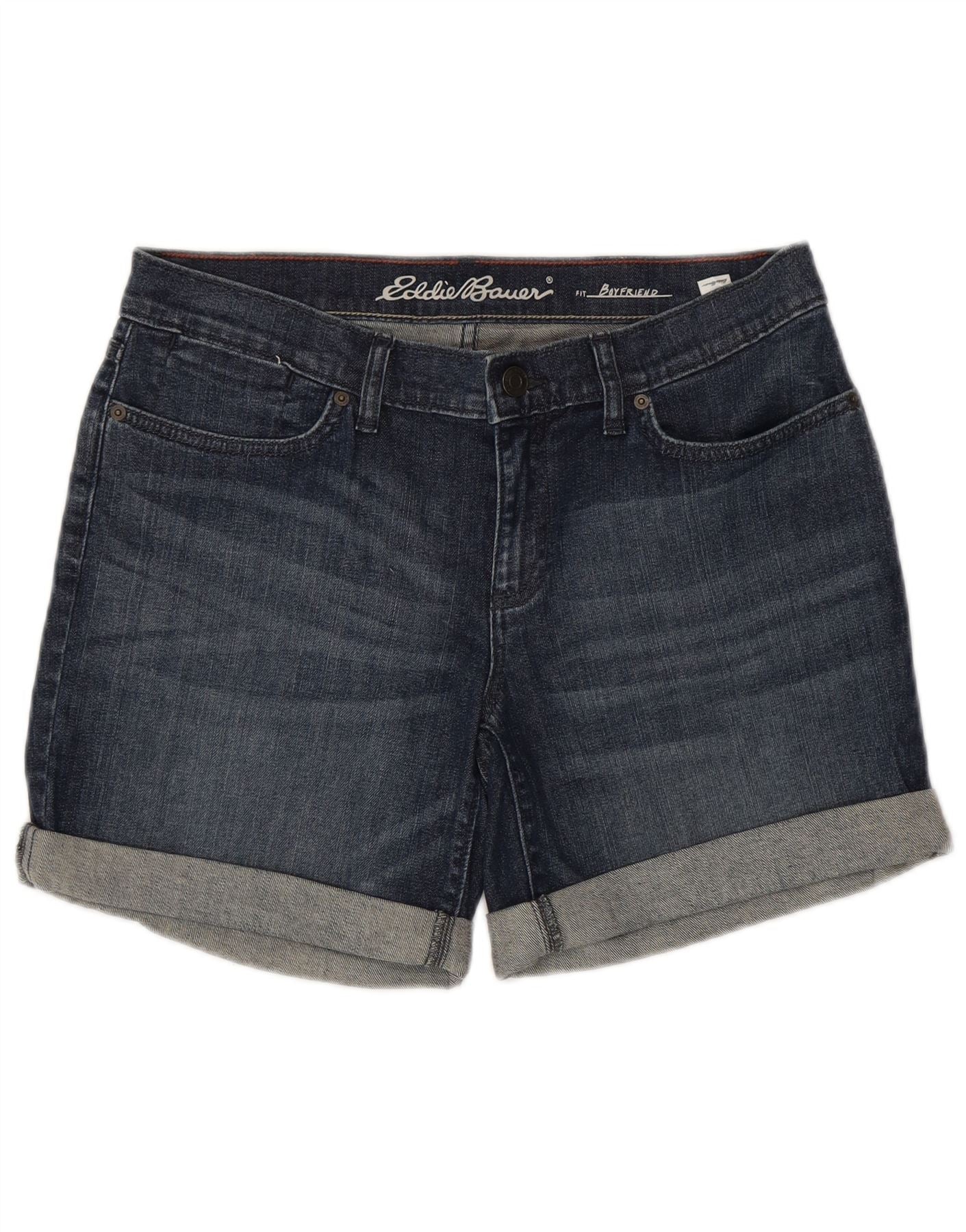 Eddie Bauer Pantalones cortos de mezclilla estilo novio para mujer US 8 Medium W34 Azul marino Algodón
