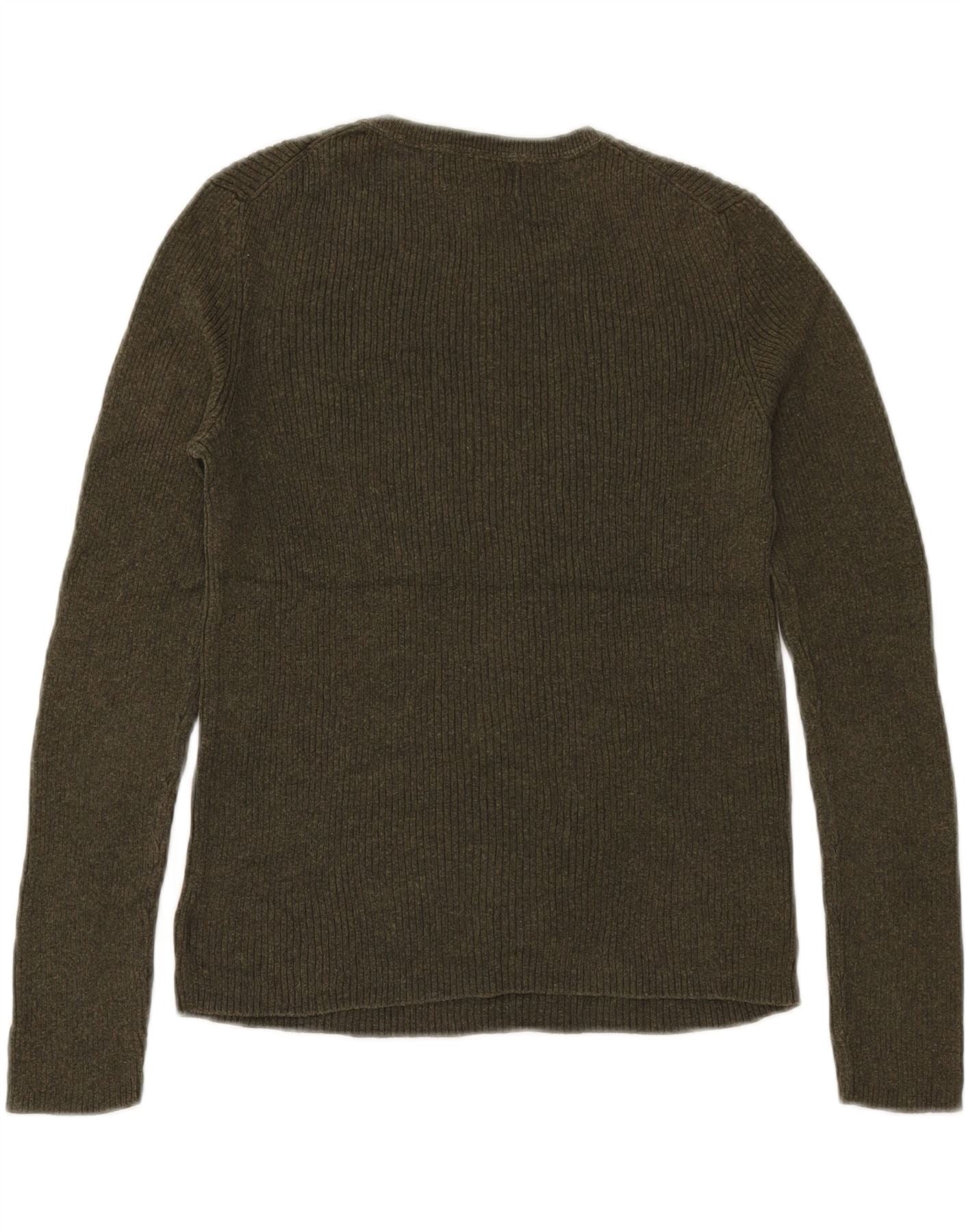 EDDIE BAUER Jersey de cuello redondo para mujer UK 10 Small Khaki Cotton