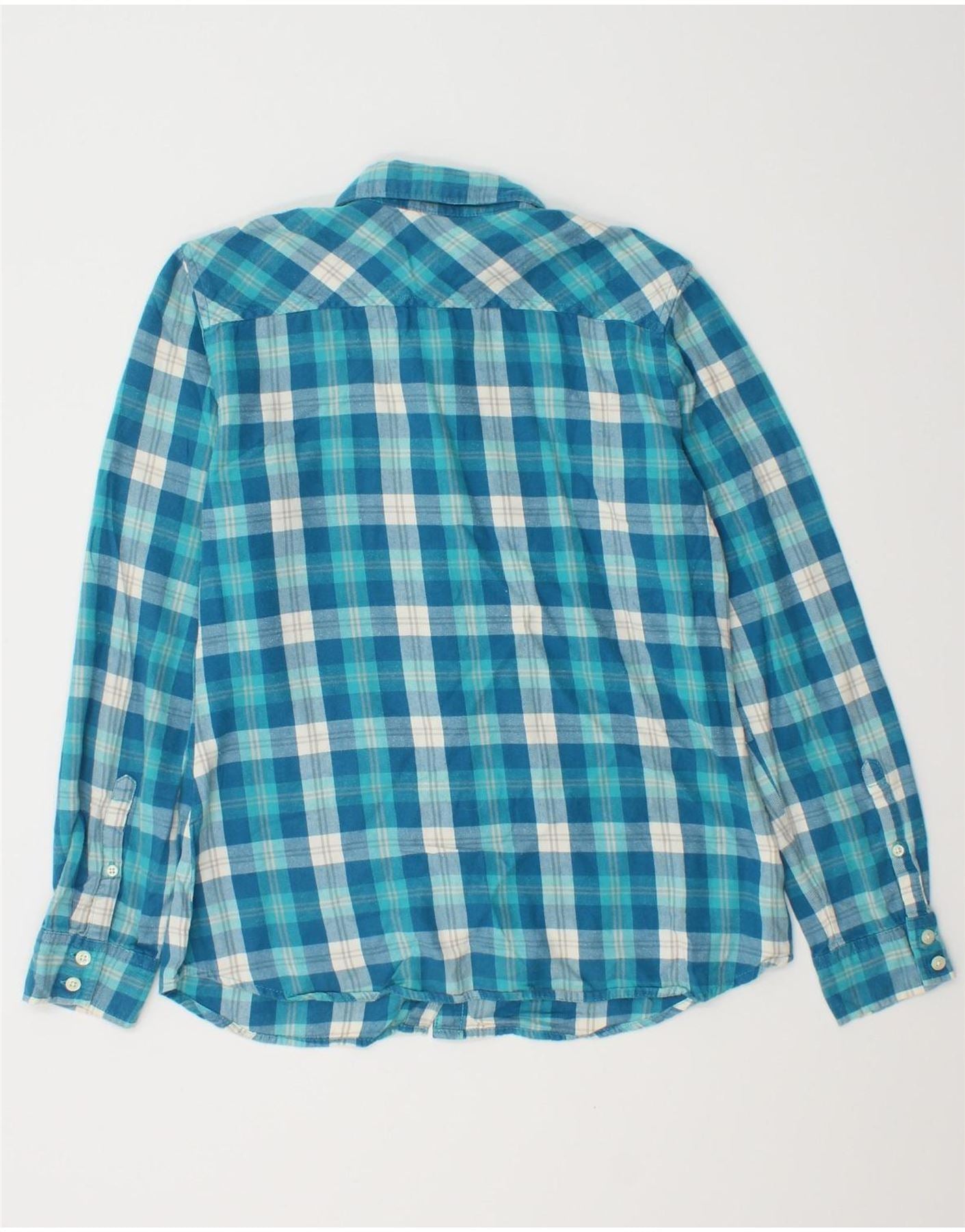 EDDIE BAUER Camisa de franela para mujer UK 10 Small Blue Check Cotton