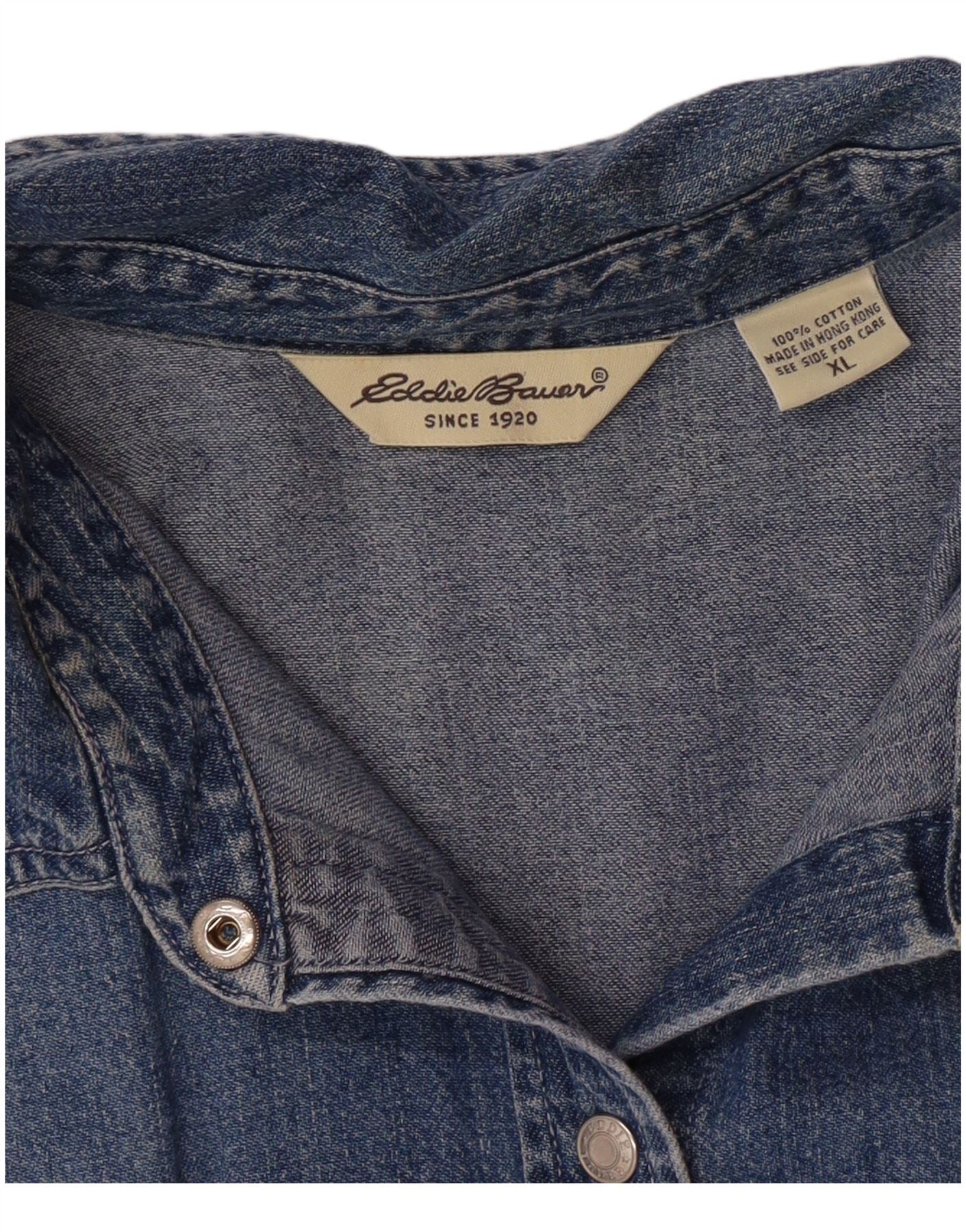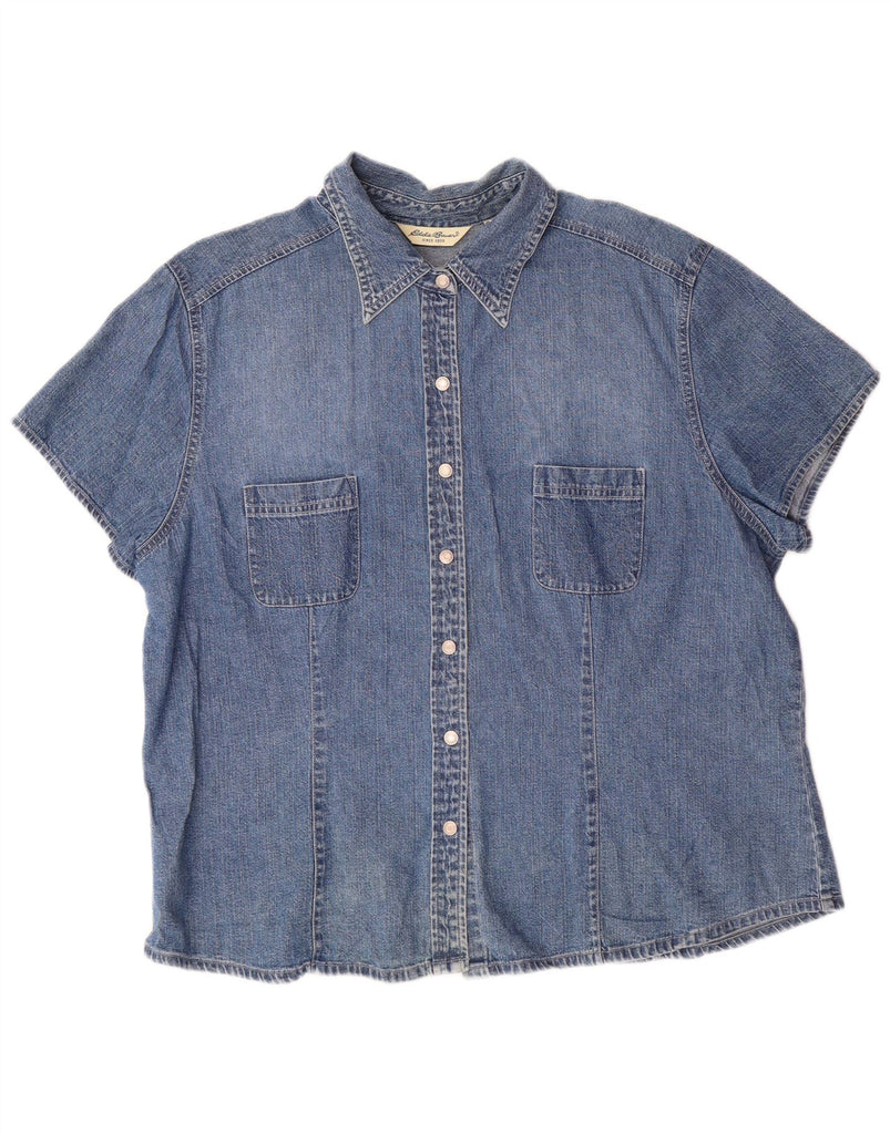 EDDIE BAUER Camisa vaquera de manga corta para mujer UK 40 XL Algodón azul