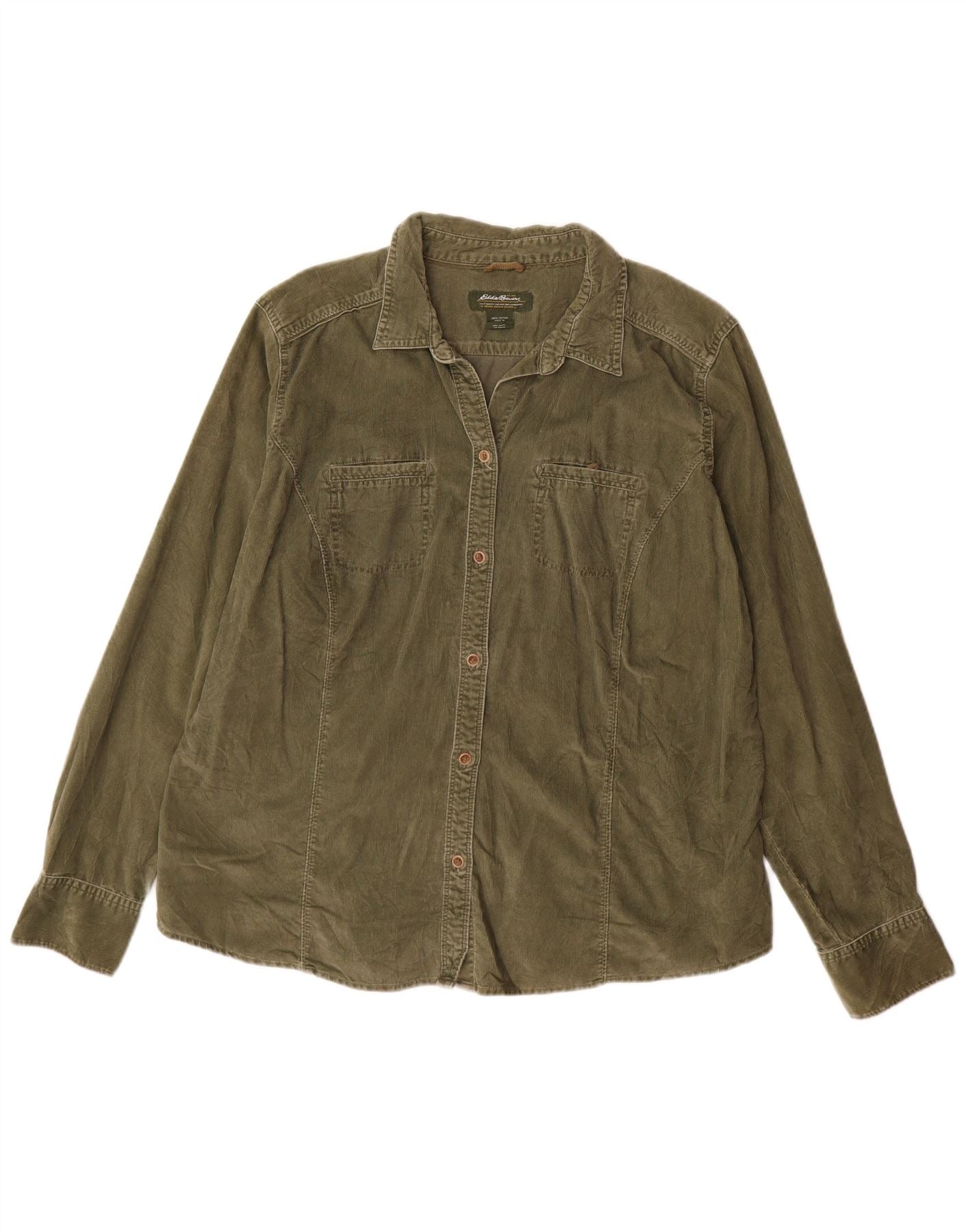 EDDIE BAUER Camisa alta de pana para mujer UK 40 XL Algodón verde