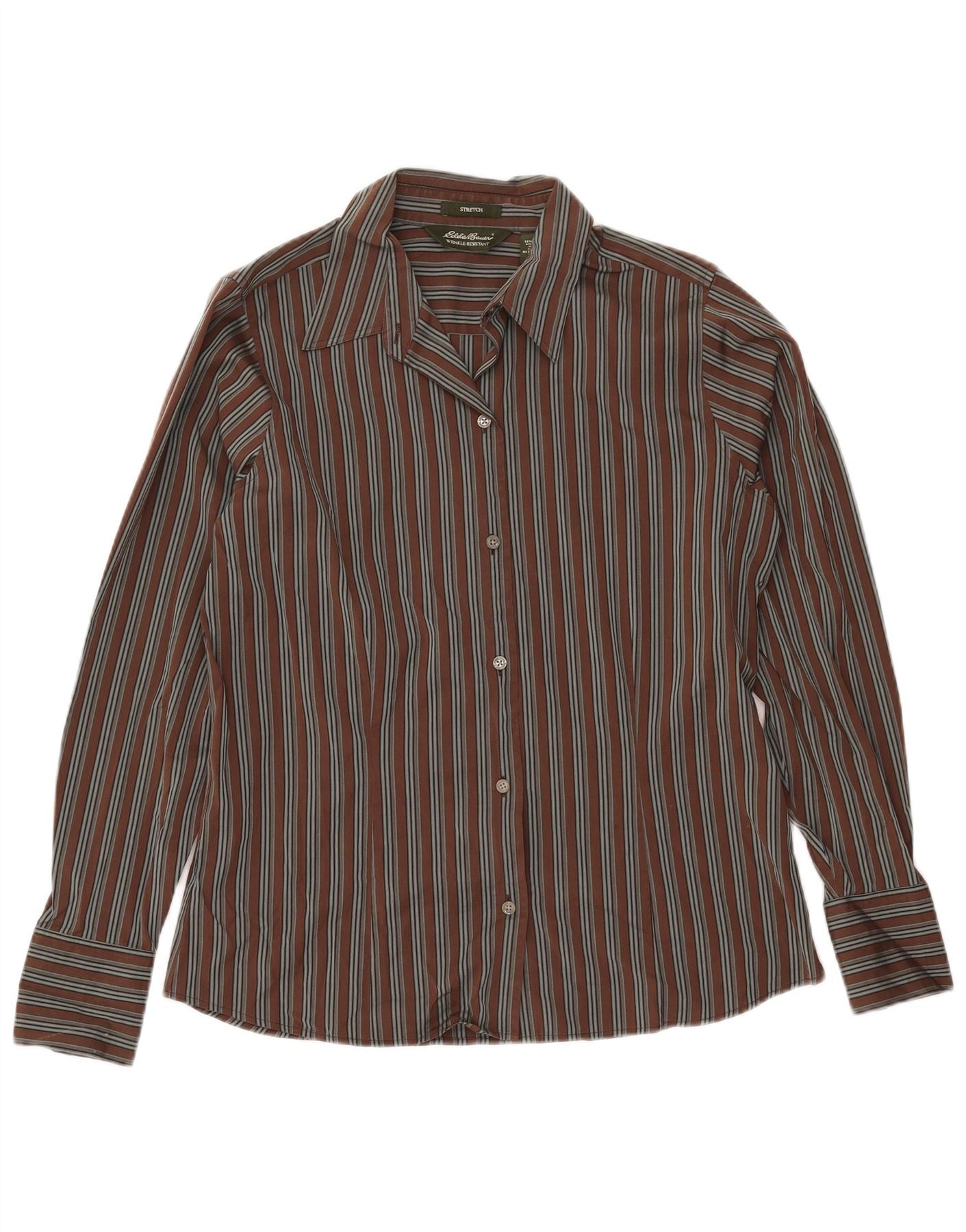 Eddie Bauer Camisa alta para mujer UK 46 Grande Algodón a rayas marrón