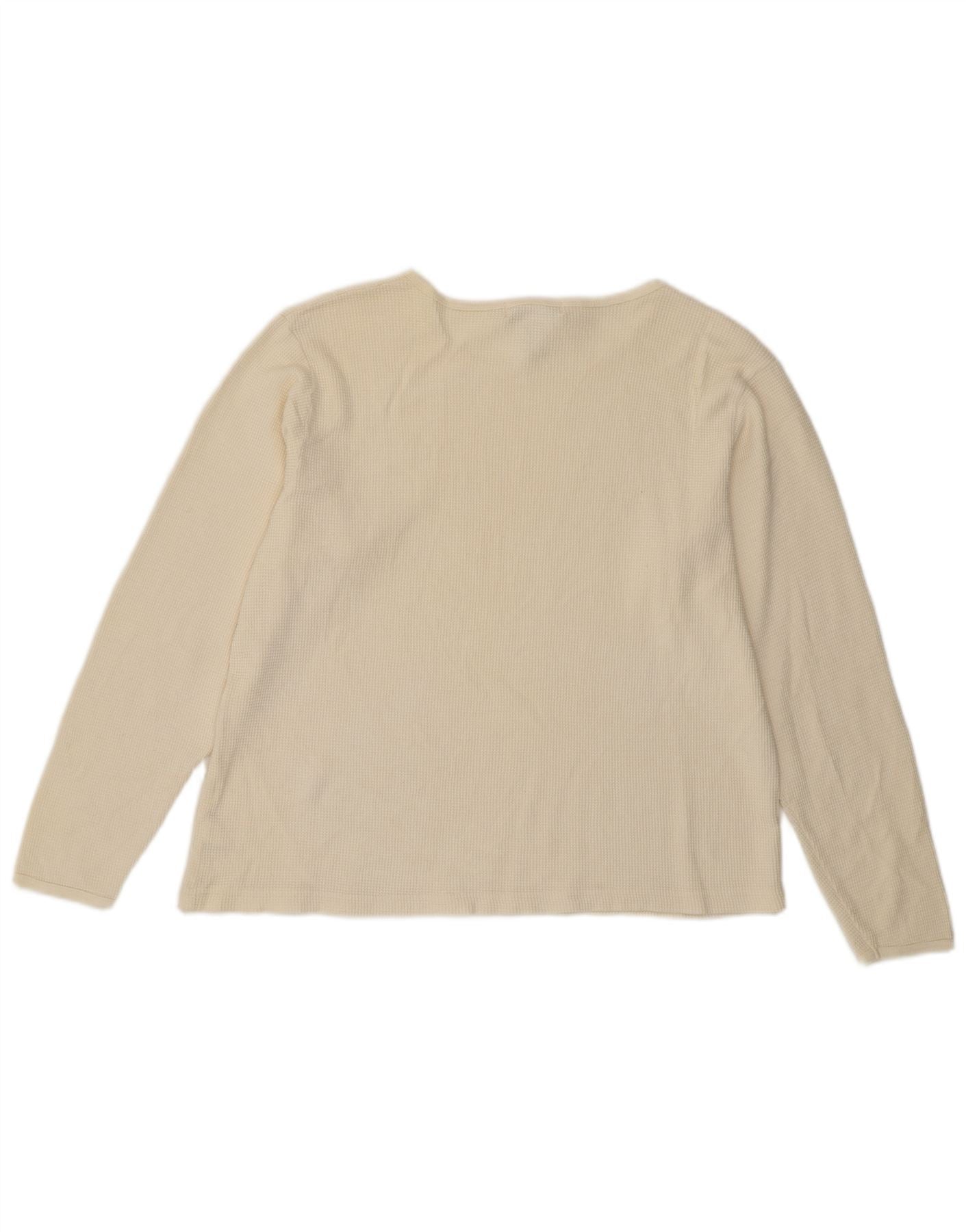 EDDIE BAUER Camiseta de mujer de manga larga UK 16 Grande de algodón blanco roto