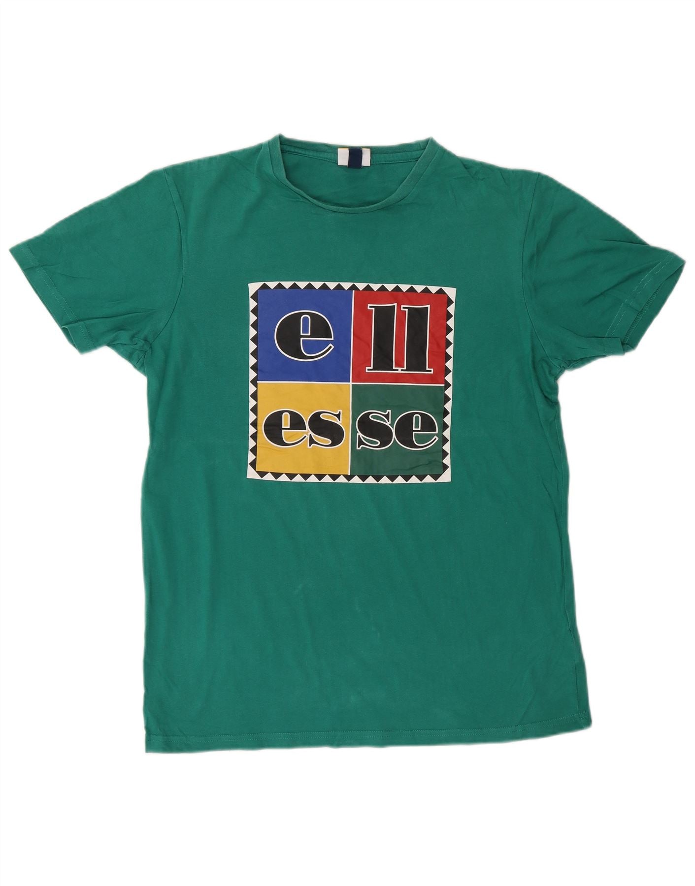 Ellesse Hombre Camiseta Gráfica Top Algodón Verde Medio