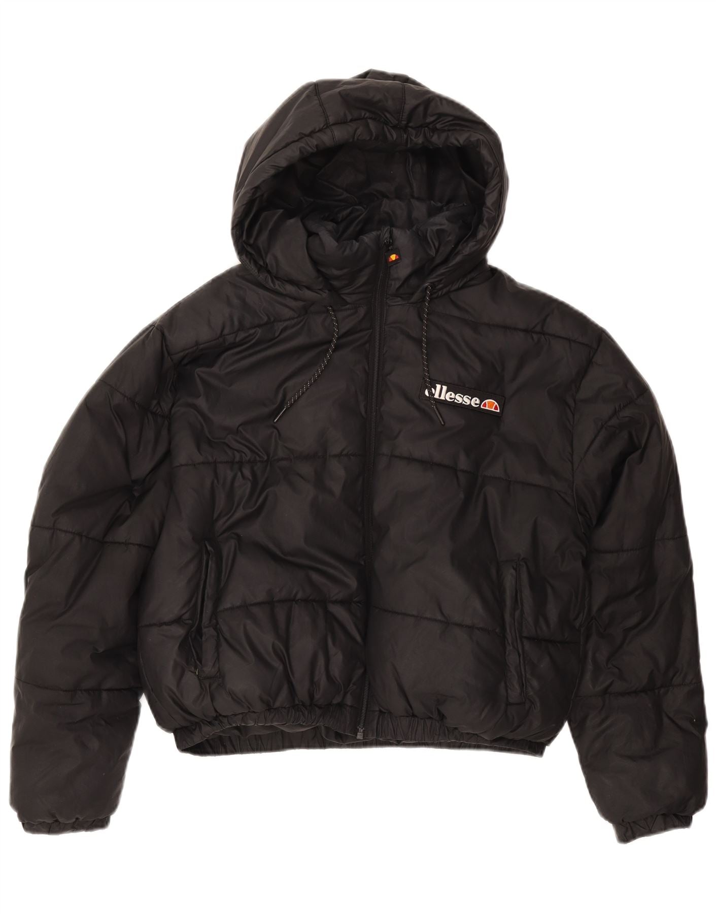 ELLESSE Chaqueta acolchada extragrande con capucha para mujer UK 12 Mediana Poliéster negro