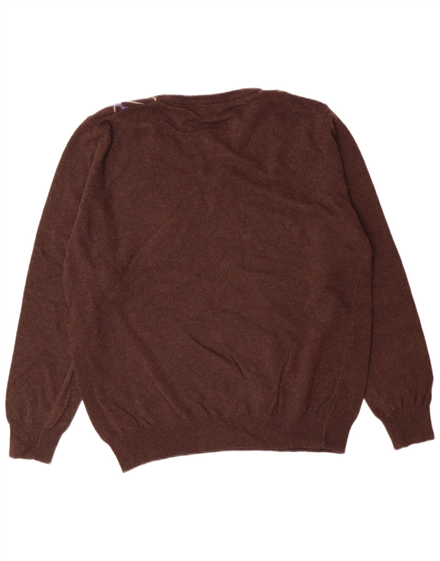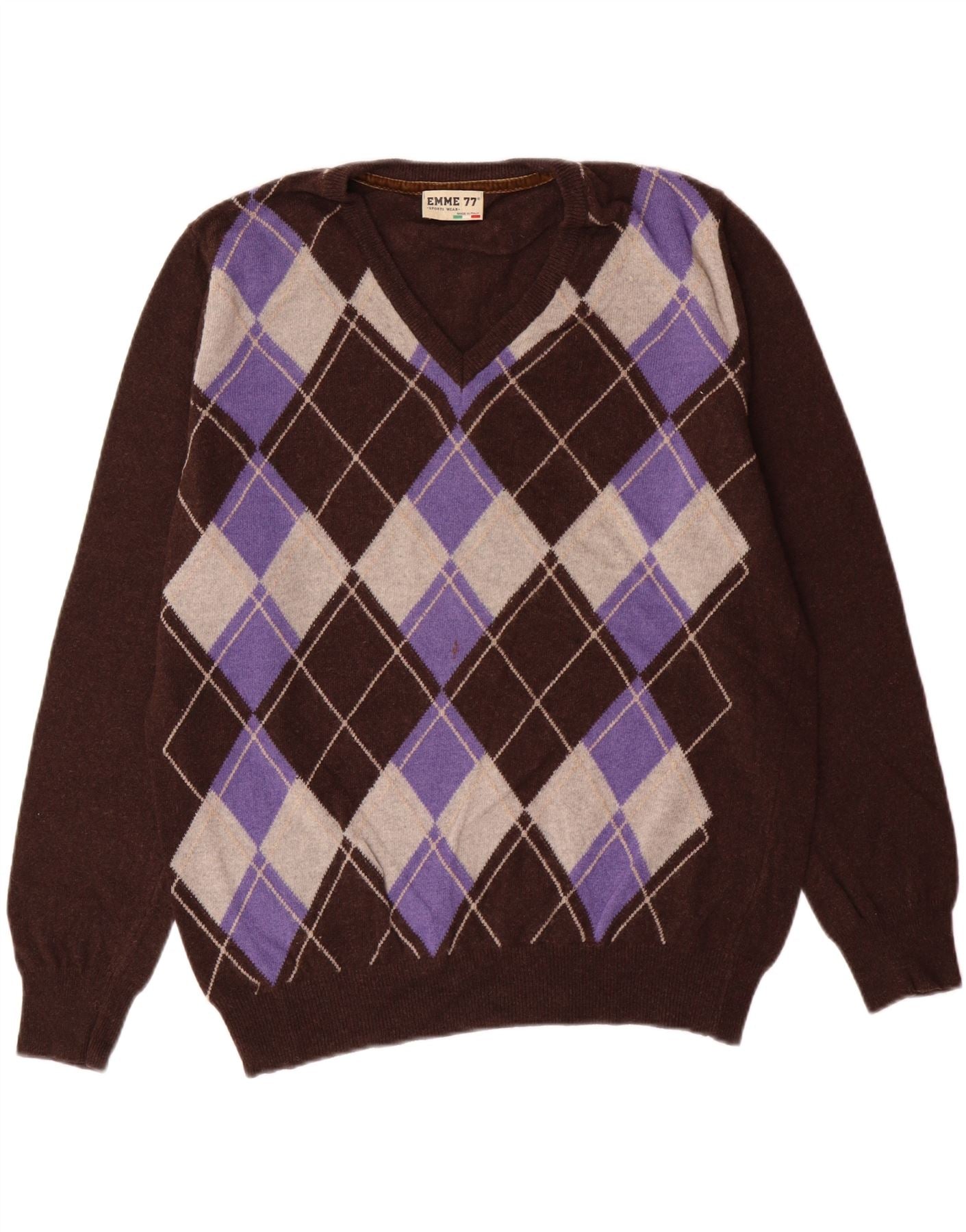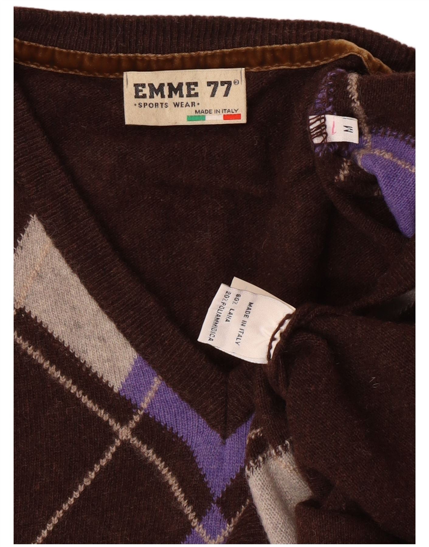 EMME 77 Jersey con Cuello en V para Hombre Marrón Medio Argyle/Lana Diamante