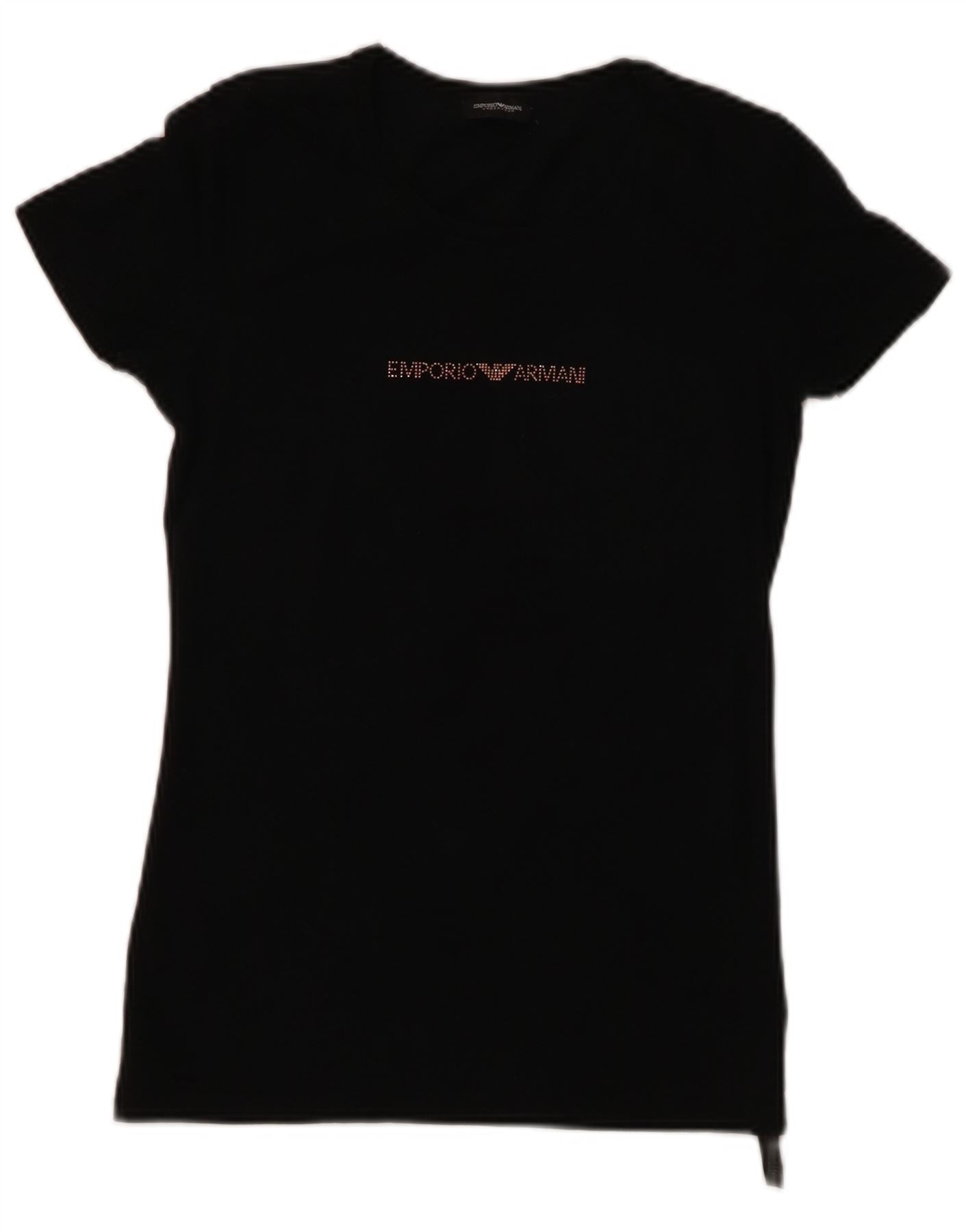 EMPORIO ARMANI Camiseta gráfica para mujer Top UK 8 Small Algodón negro