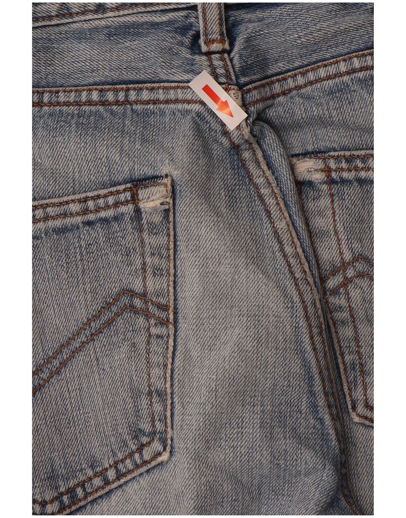 - Condición: Condición de uso aceptable: el artículo se ha usado con frecuencia y puede tener numerosos defectos - Material desgastado. Cintura reelaborada. Marca de mancha en el largo delantero izquierdo. W 26 agujeros en la entrepierna delantera.