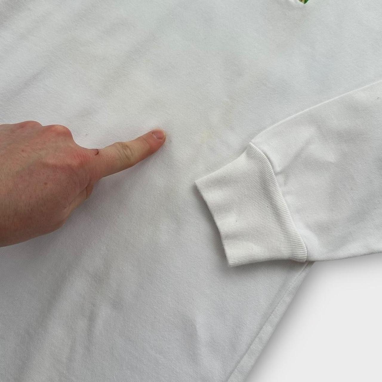 Top de rugby inglés vintage de los años 90 en blanco con logo bordado en el pecho