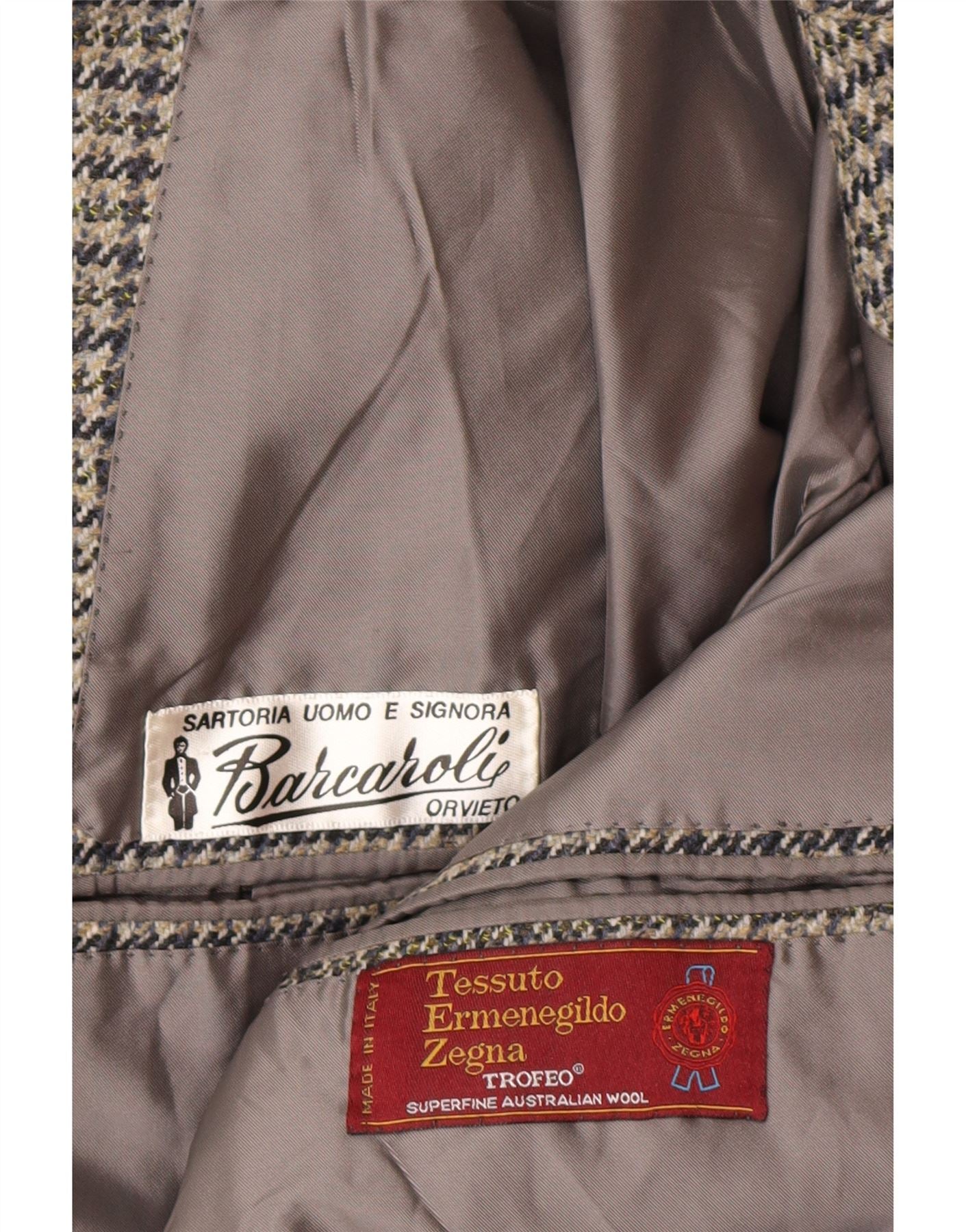 ERMENEGILDO ZEGNA Mens 2 Button Blazer Jacket UK 36 Small Grey Houndstooth