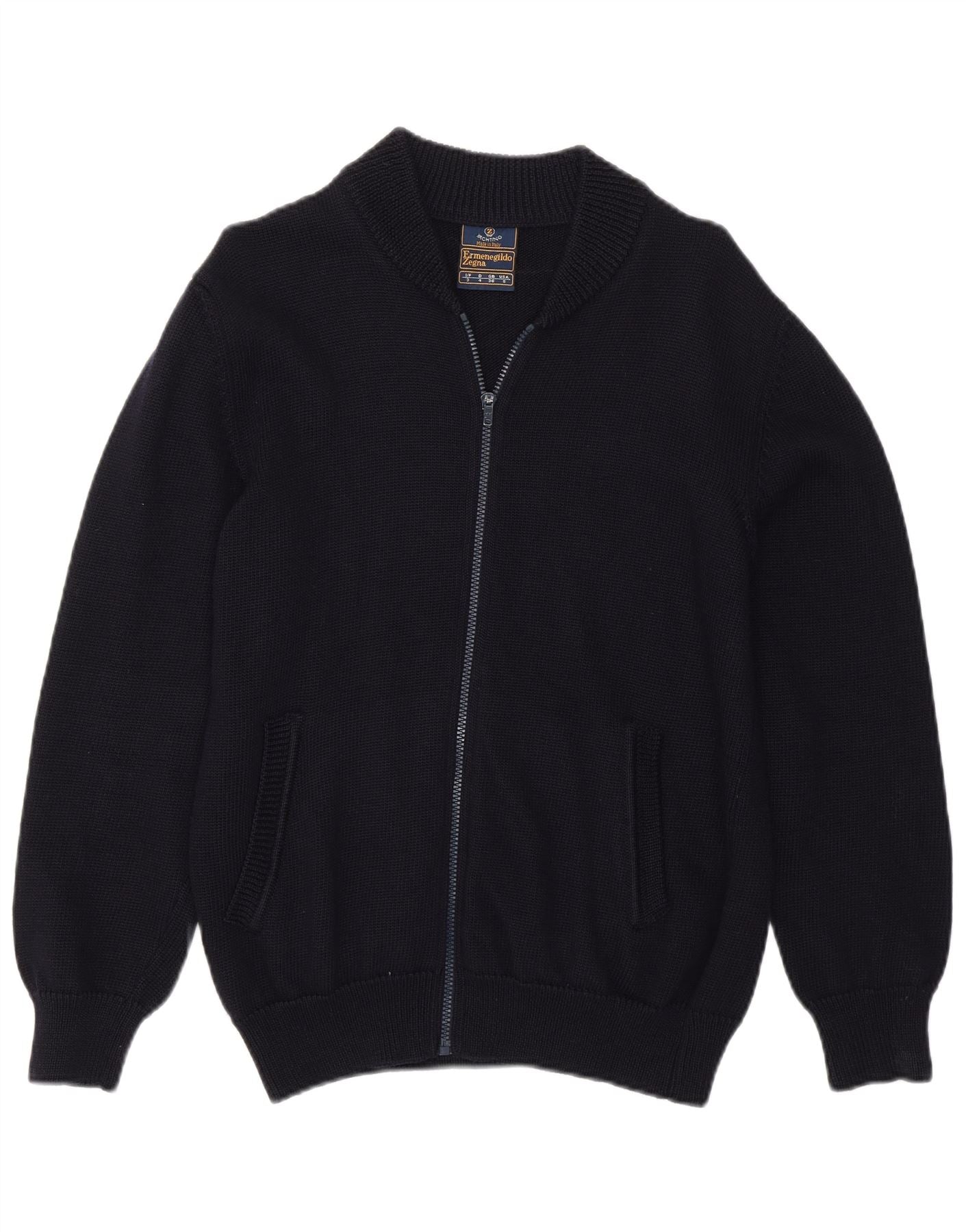 ERMENEGILDO ZEGNA Suéter tipo cárdigan para hombre UK 36 Small Lana virgen azul marino
