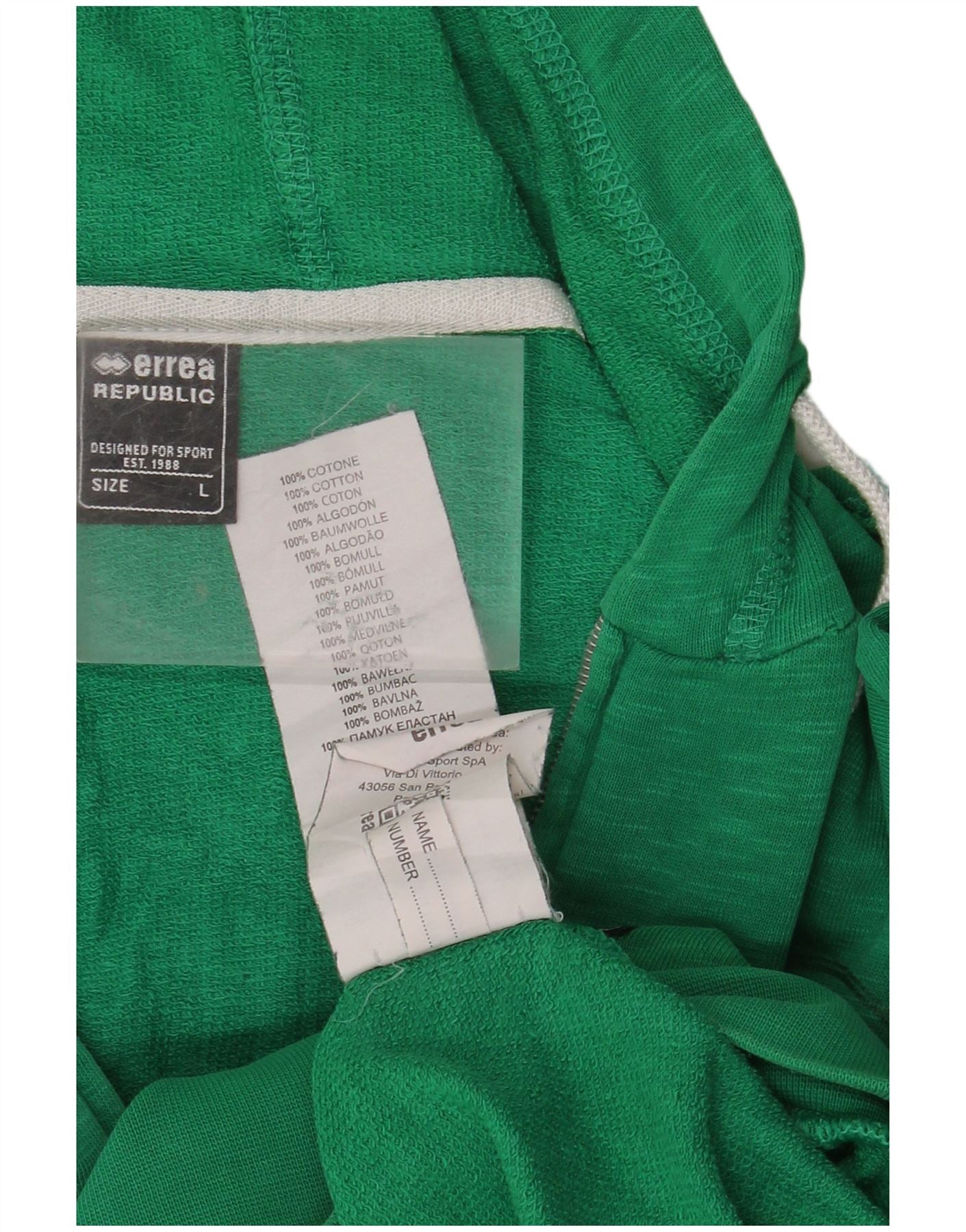 ERREA Suéter con capucha y cremallera para hombre Algodón verde grande