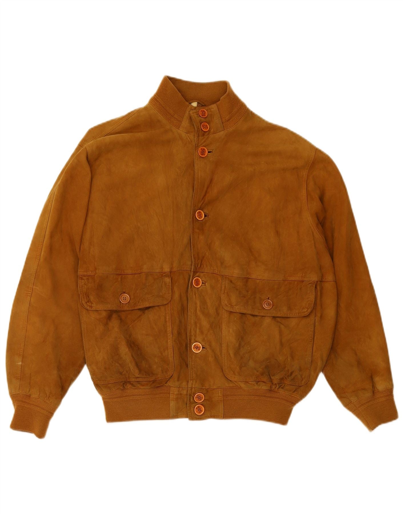 FABIO D Chaqueta bomber de ante para hombre UK 40 Large Beige Leather