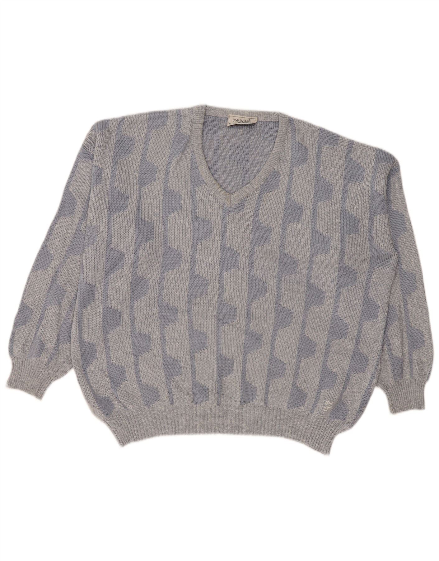 Farah Jersey con cuello en V para hombre UK 42 Acrílico geométrico azul grande