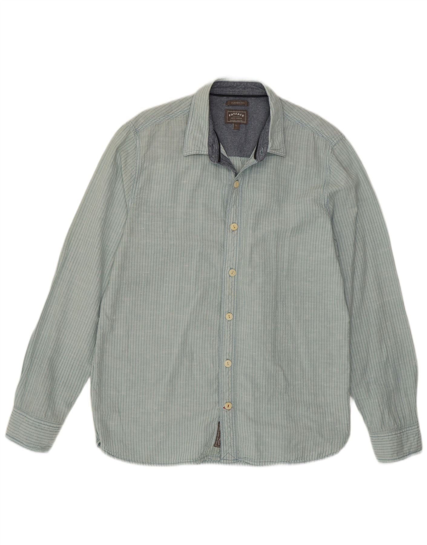 Camisa de corte clásico para hombre de Fat Face, talla grande, de lino a rayas azules