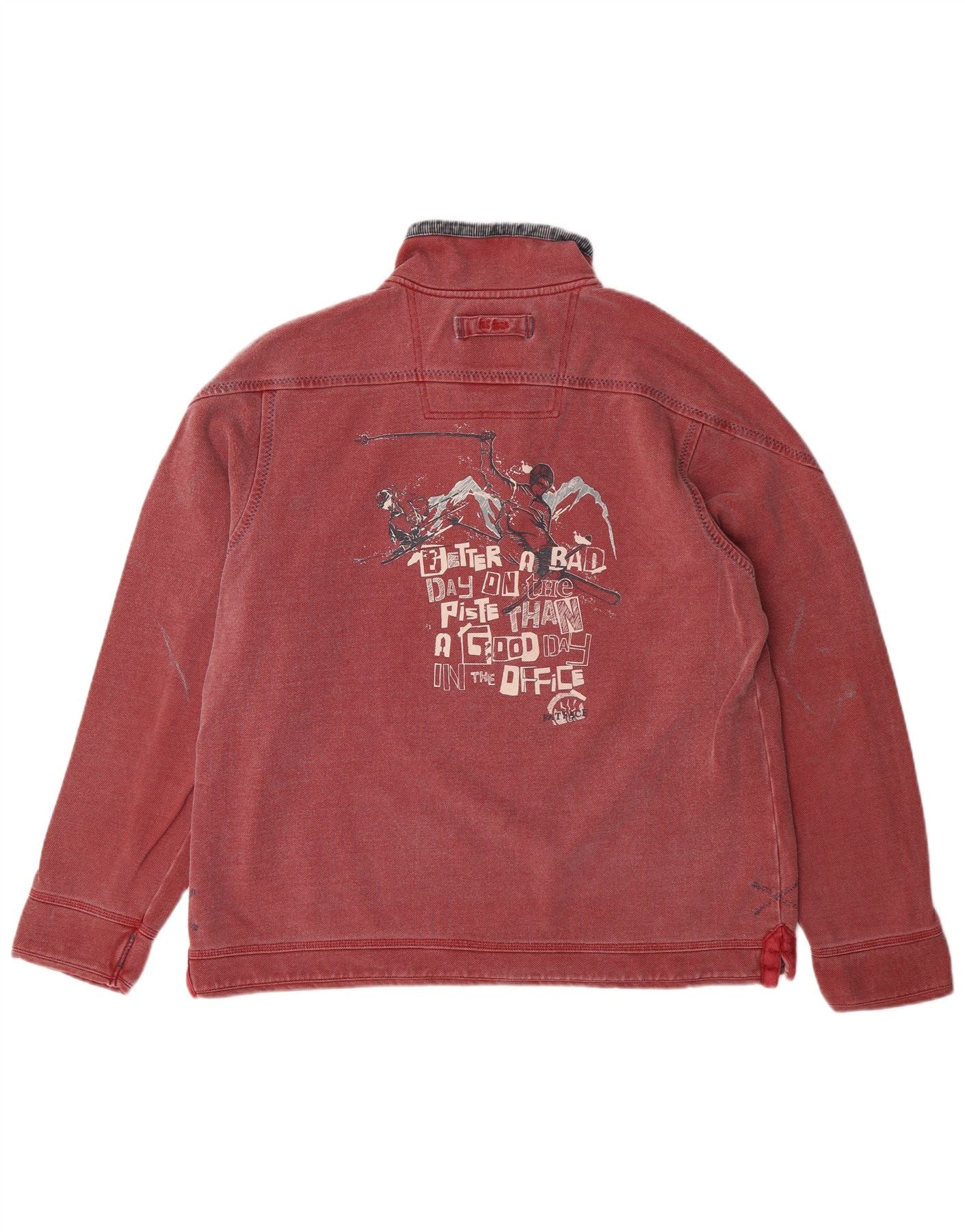 FAT FACE Sudadera con gráfico y cuello con cremallera para hombre Jersey tipo jersey de algodón rojo medio