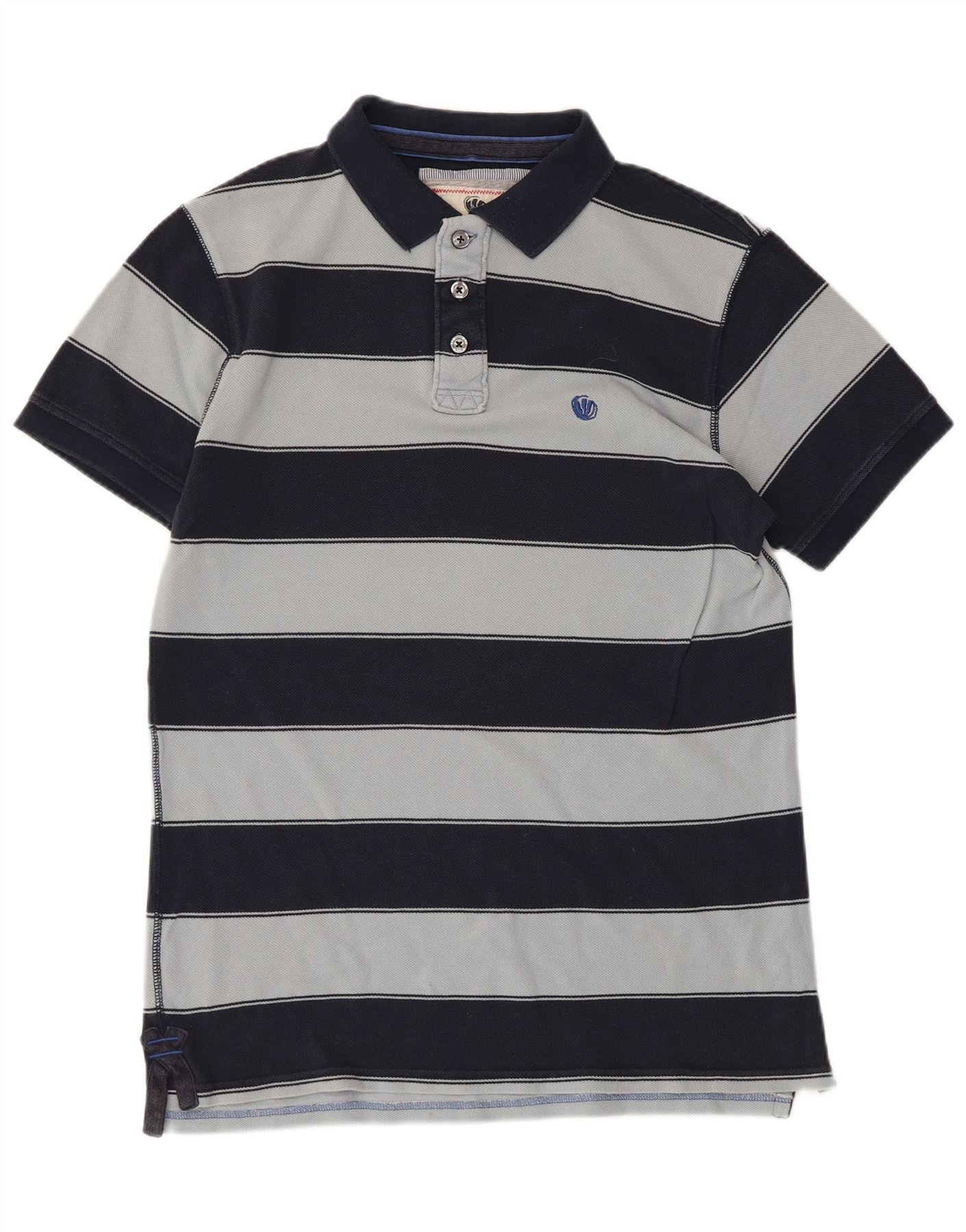 FAT FACE Polo para hombre de algodón a rayas azul marino medio