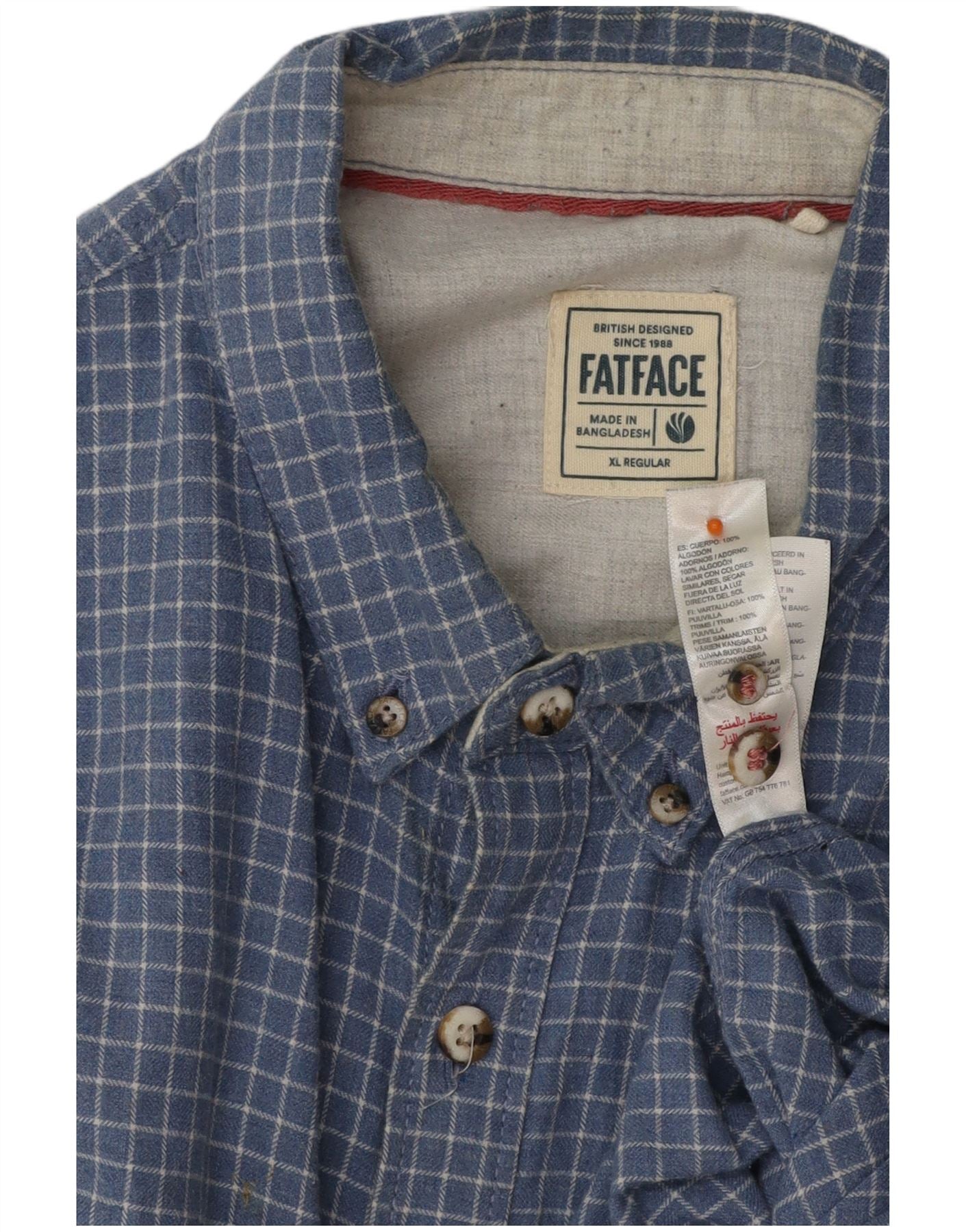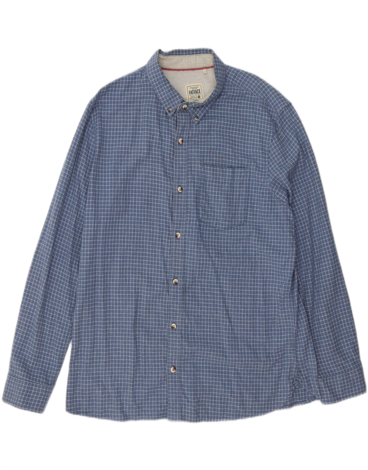 FAT FACE Camisa de franela de corte regular para hombre XL Algodón a cuadros azules