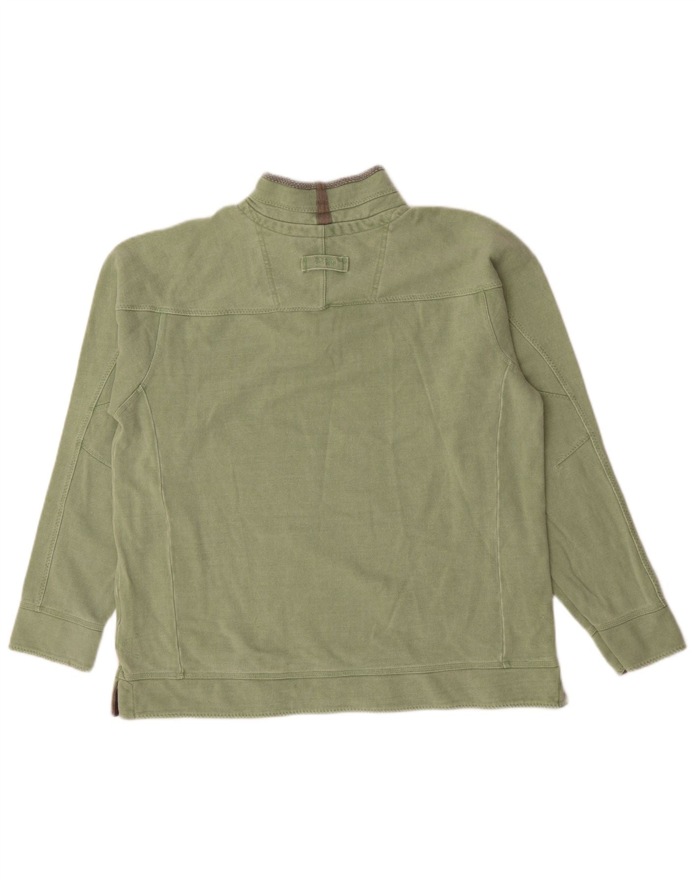 - Descripción de IA: Esta sudadera tipo jersey para hombre de Fat Face está confeccionada con un suave tejido de punto 100 % algodón en un versátil tono verde. Presenta un escote de cuello alto con un práctico cierre de cremallera. Las mangas largas y el corte regular garantizan una comodidad de uso. Un sutil logotipo bordado añade un toque distintivo. El estilo clásico ofrece versatilidad diaria para un look casual elegante.