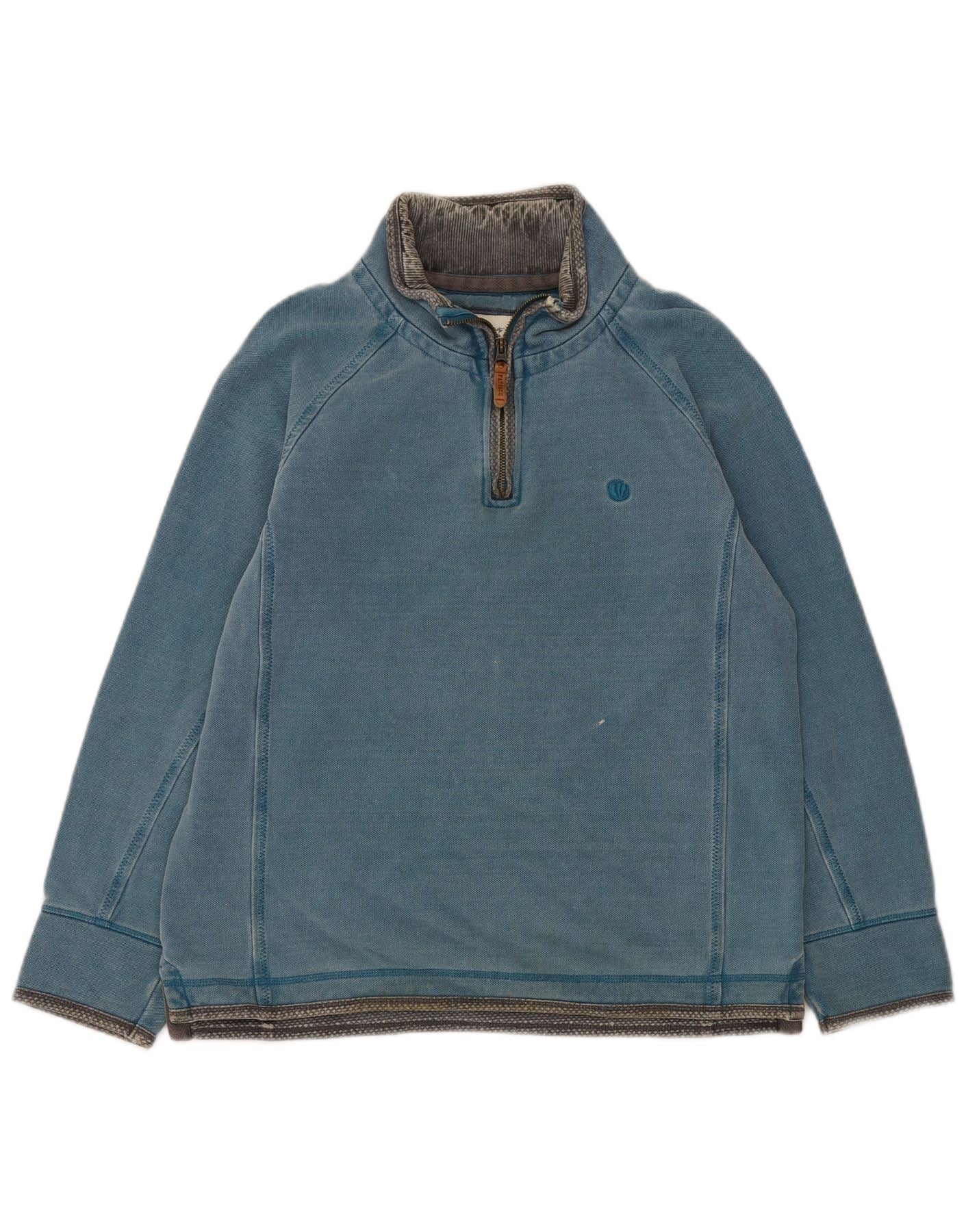 Sudadera con capucha y cuello con cremallera para hombre Fat Face Jersey de algodón azul medio