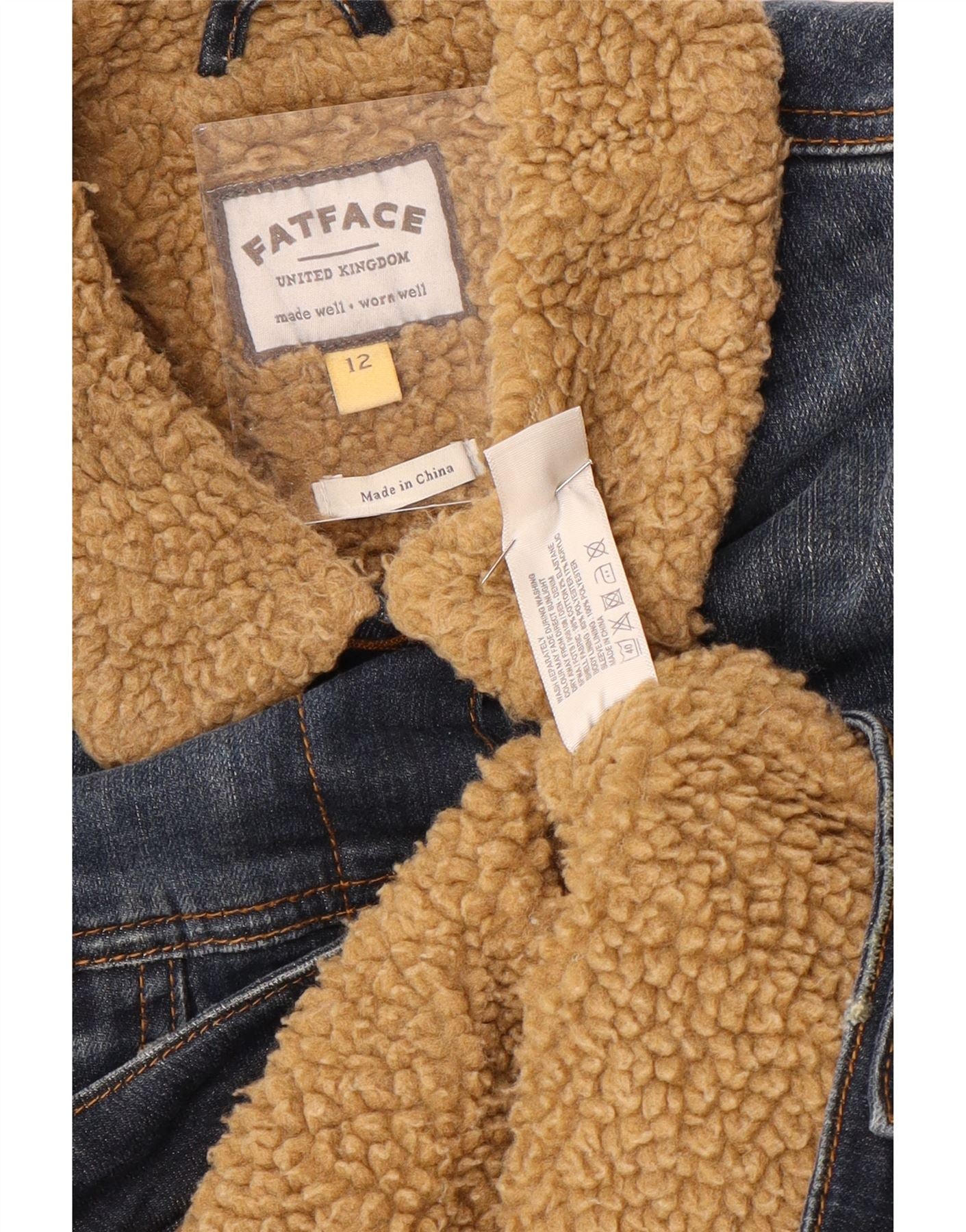 FAT FACE Chaqueta vaquera Sherpa para mujer UK 40 Algodón azul medio