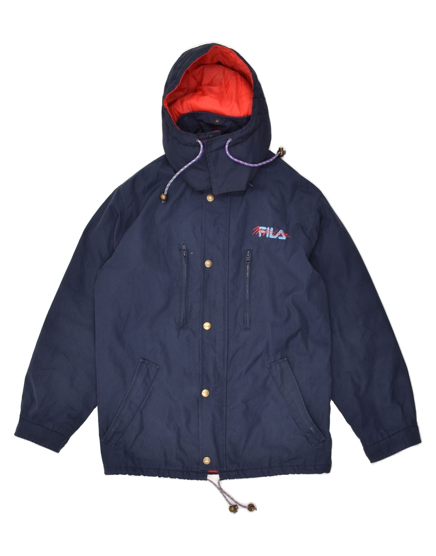 FILA Mens Hooded Windbreaker Jacket IT 44 2XS Navy Blue Polyester