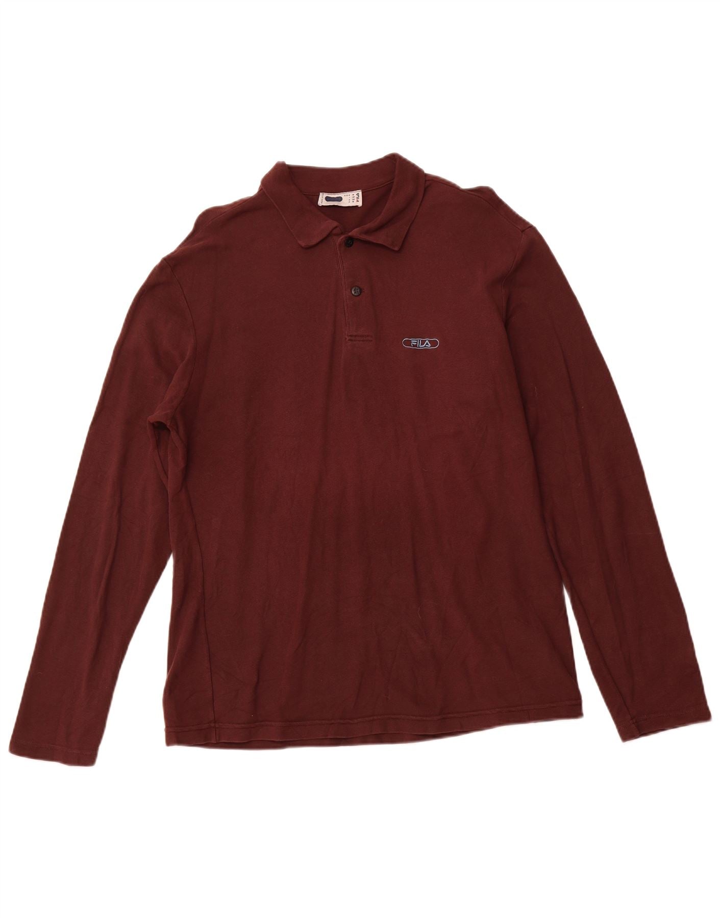 Fila Polo de manga larga para hombre, color burdeos mediano