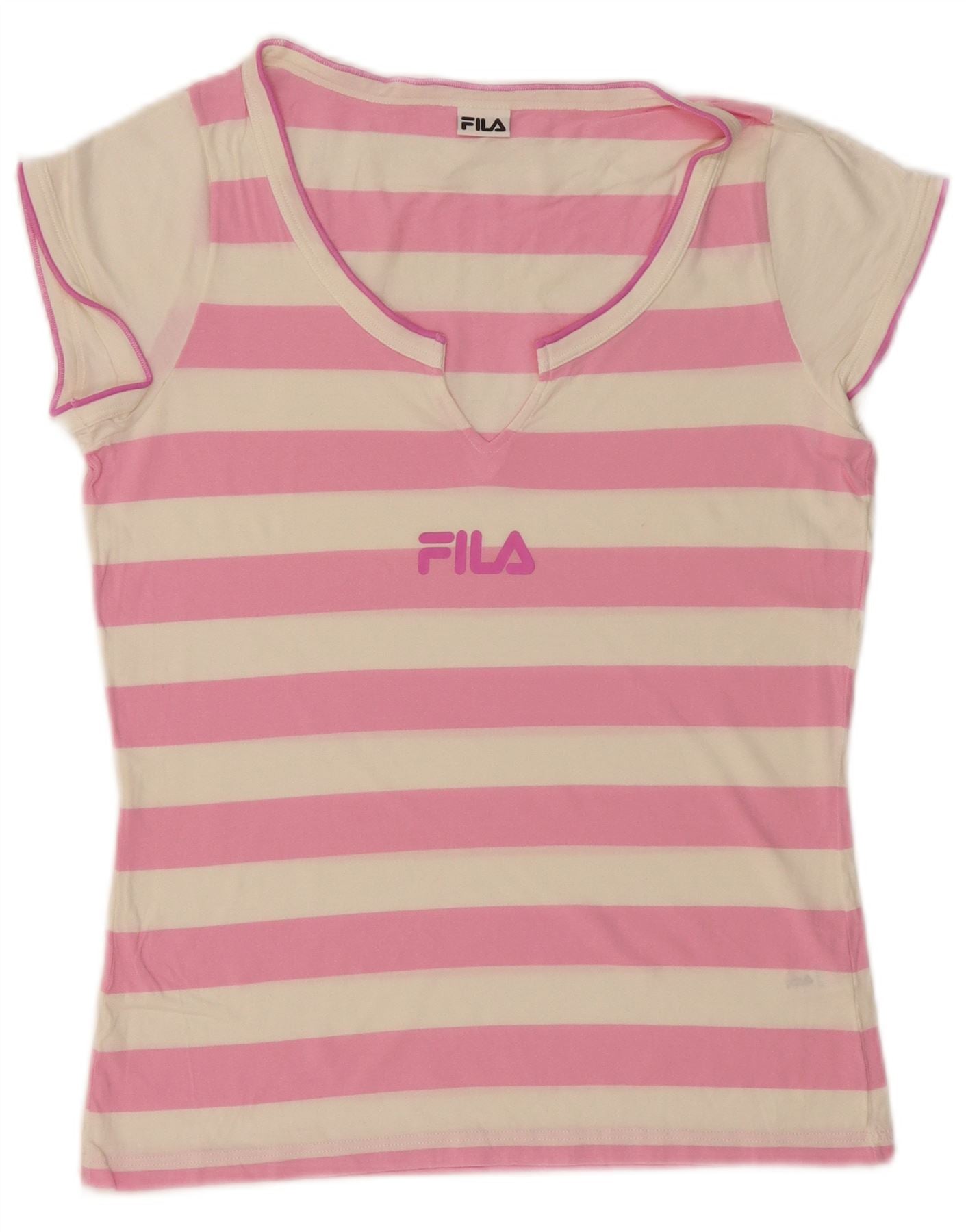 Fila Camiseta gráfica para mujer Top UK 12 Algodón a rayas rosa medio
