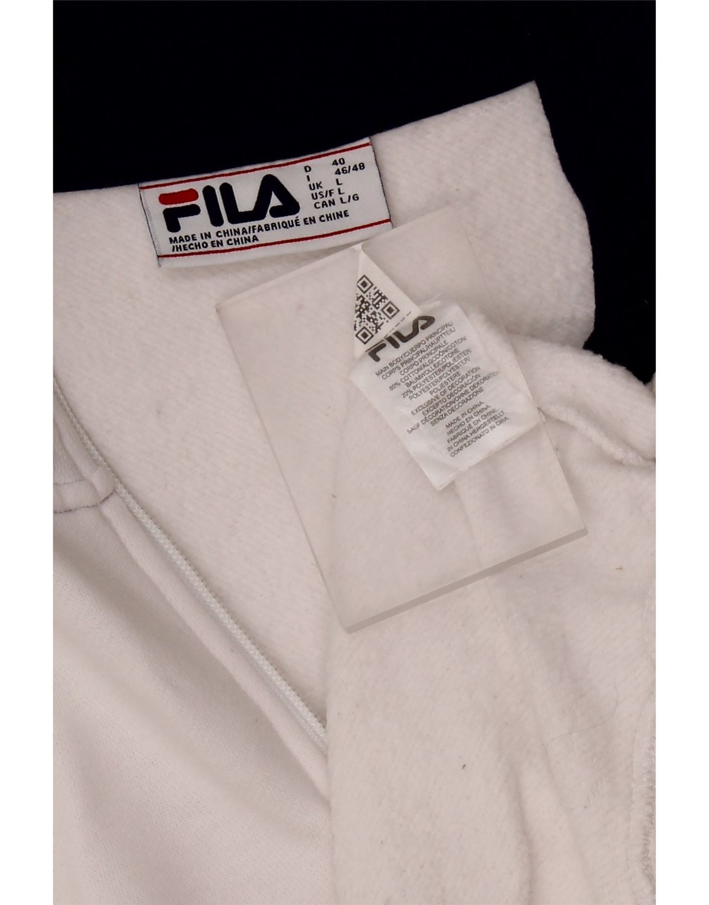 FILA - Sudadera con cuello y cremallera para mujer, talla grande, algodón blanco