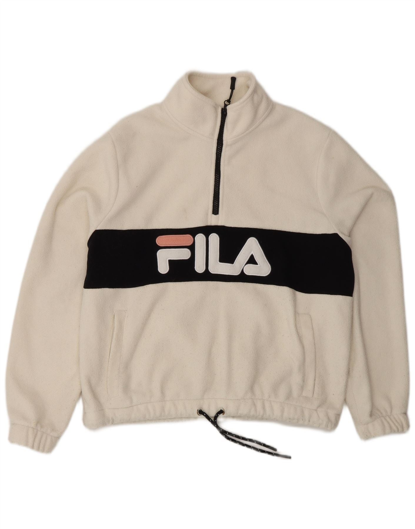 FILA Jersey de forro polar con gráfico extragrande para mujer UK 10 Small White Colourblock
